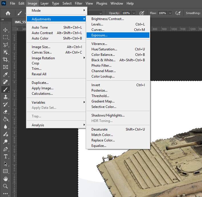 Next step is the exposure. Play around with this, you want to lighten up the bottom of the photo but you don’t want to erase the shadow. I went with 0.3 - a little bit of exposure adjustment goes a long way.