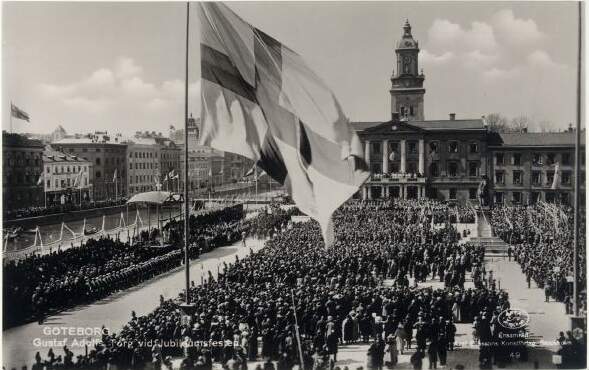 The Swedish national flag at a ceremony in Gothenburg 1923