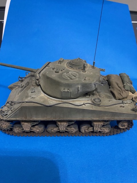 Here is a shot from the other side. My problem became Son of Sherman. It was no longer just building a sherman. One thing that needs adding is an exhaust deflector. Shapeways used to have a good one I used for this. I’m fuzzy, but if I recall, the DML “Red Army” kit has the earlier 47 degree hull and there weren’t many of those as 76mm. I will try and remember just what I did to get to this point.