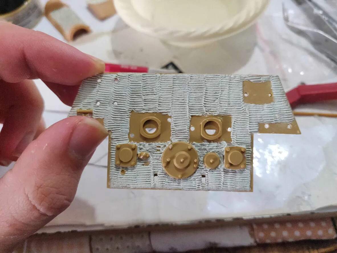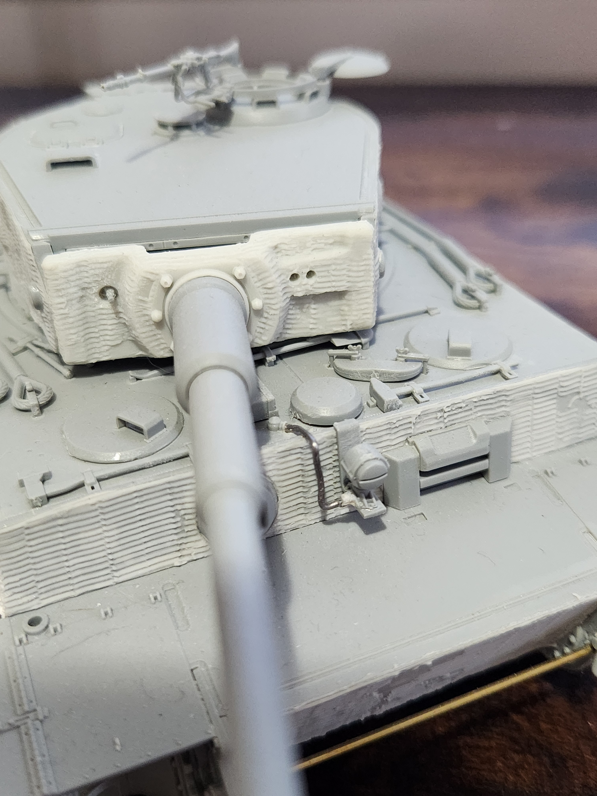 This is ATAK zimmerit on my late Tiger 1. I had to use superglue as ATAK are not decals, but pre cut sheets of raised resin. They also include the mantlet, loaders door out of a piece of resin, as they would be hard to get the sheet over the mantlet. After you do a wash after painting….all the raised detail pops out.