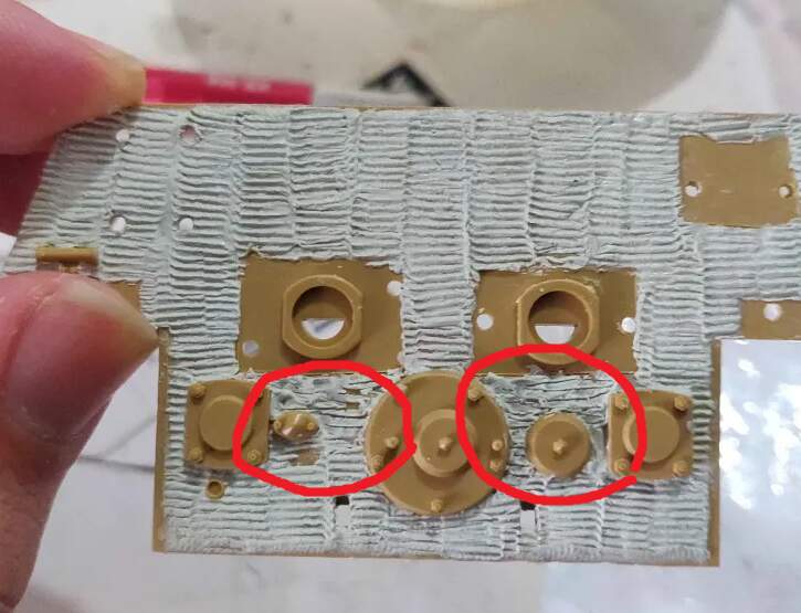 These come as a single sheet from which all the actual parts are slightly raised, and you cut them out along the outside before glueing them to the model with superglue.