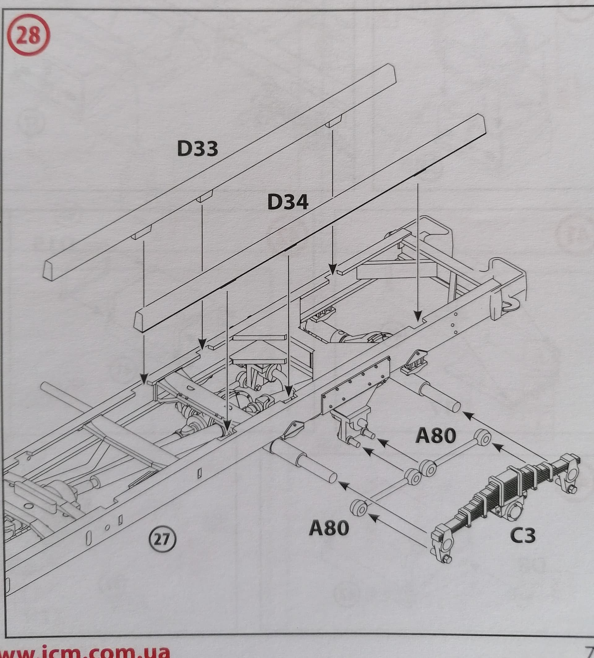ICM made the C-channels with their opening towards the chassis rails - presumably not overly correct, but saving the modeler the work of adding the blocks!