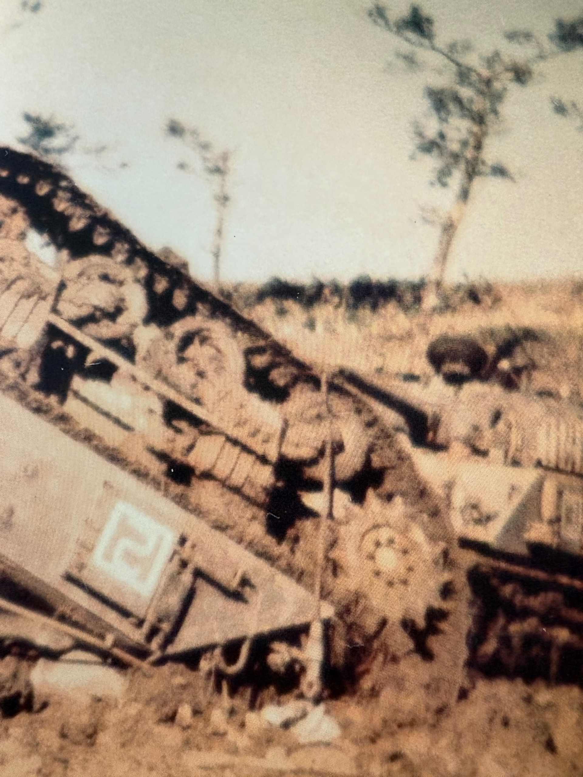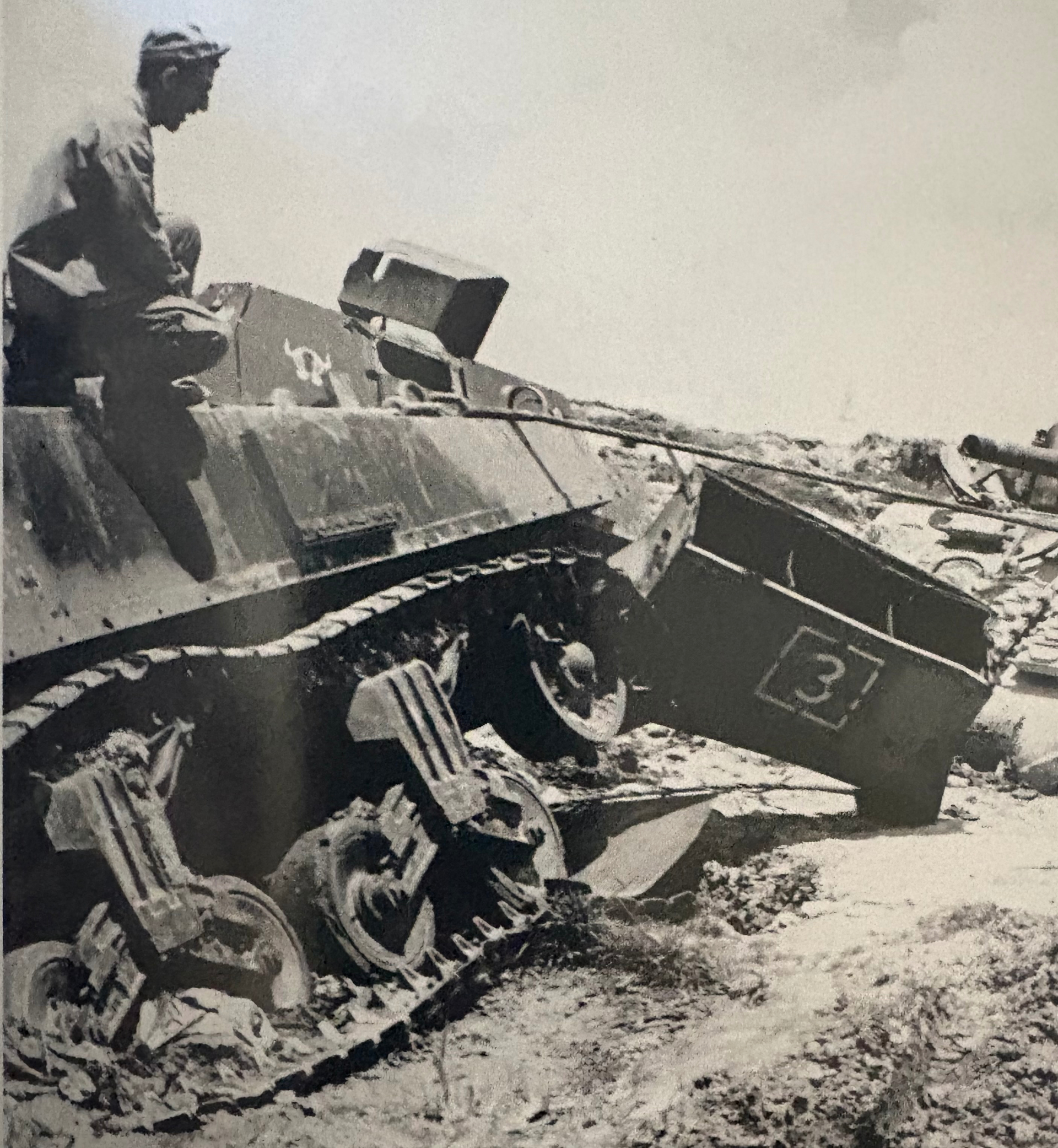 In this image below square 3 looks to have lost its trunk in an explosion, left track is blown off and it seems that they are trying to tow it out of a crater to repair it the rear of the tank looks like it might’ve caught on fire. The paint on the rear of the tank and where the square 3 is painted looks damaged.