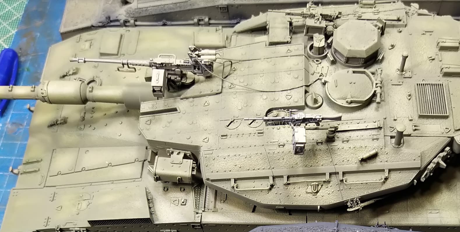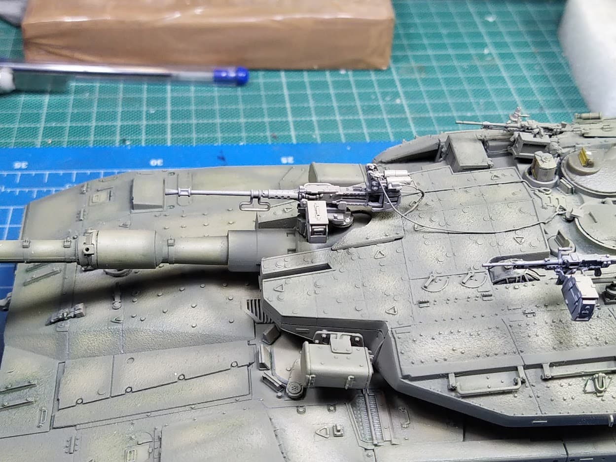 Repositioned the .50 cal on the mantlet to sit properly on its mount and a bit more at the back than the instructions suggest. Per the instructions the mg is sitting too much at the front.