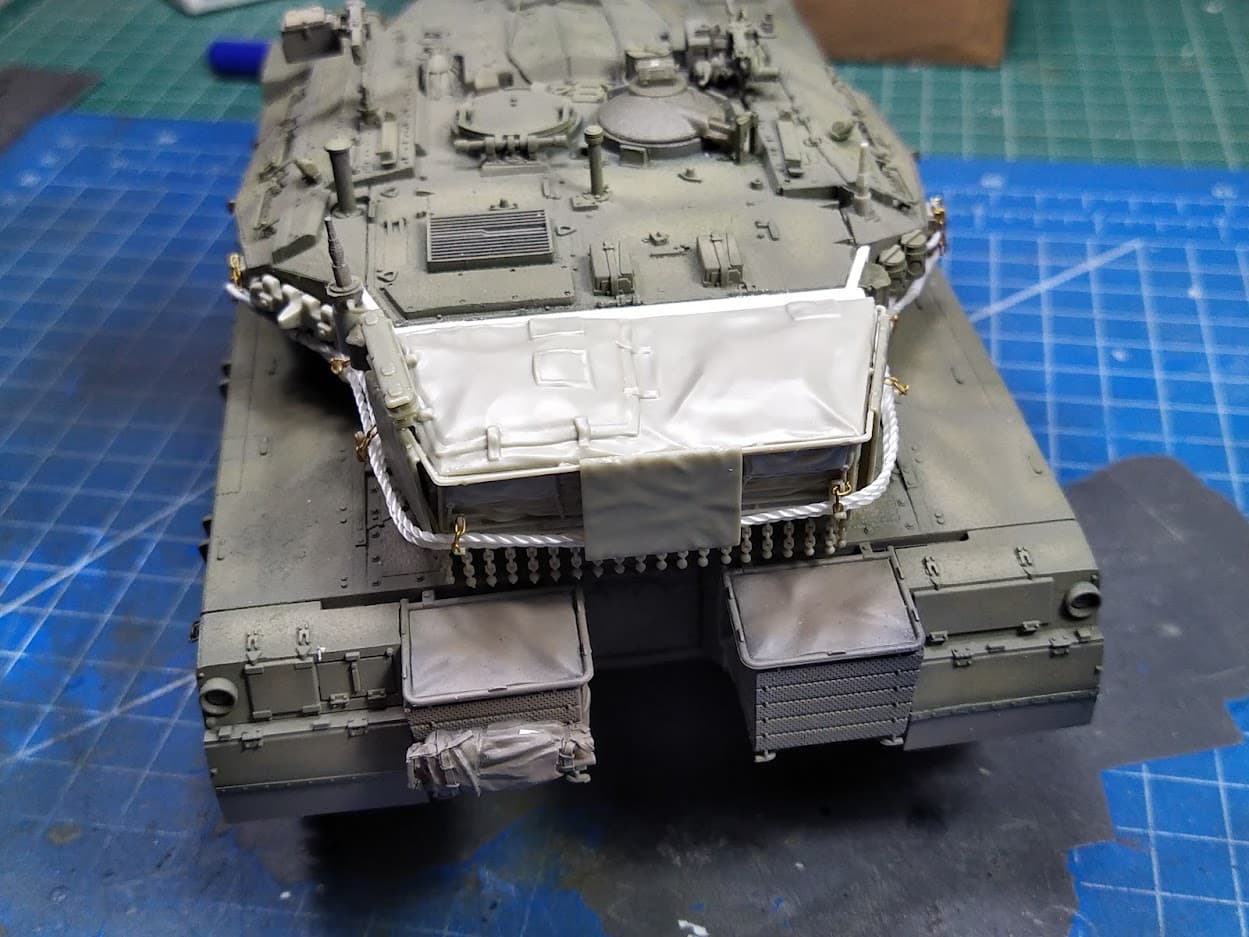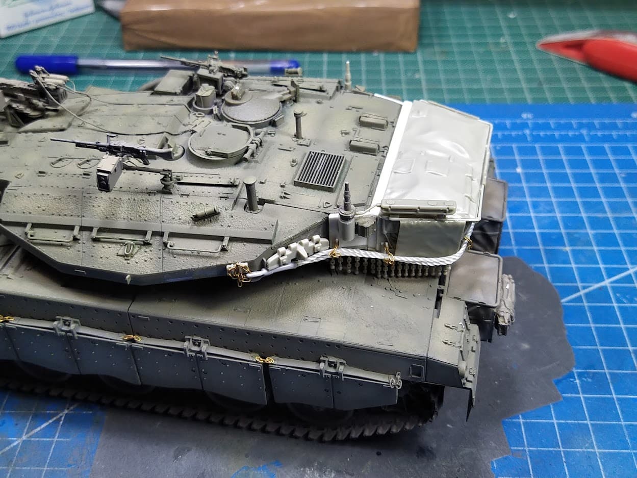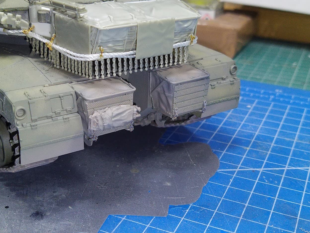 I added the chains at the rear hull baskets:
