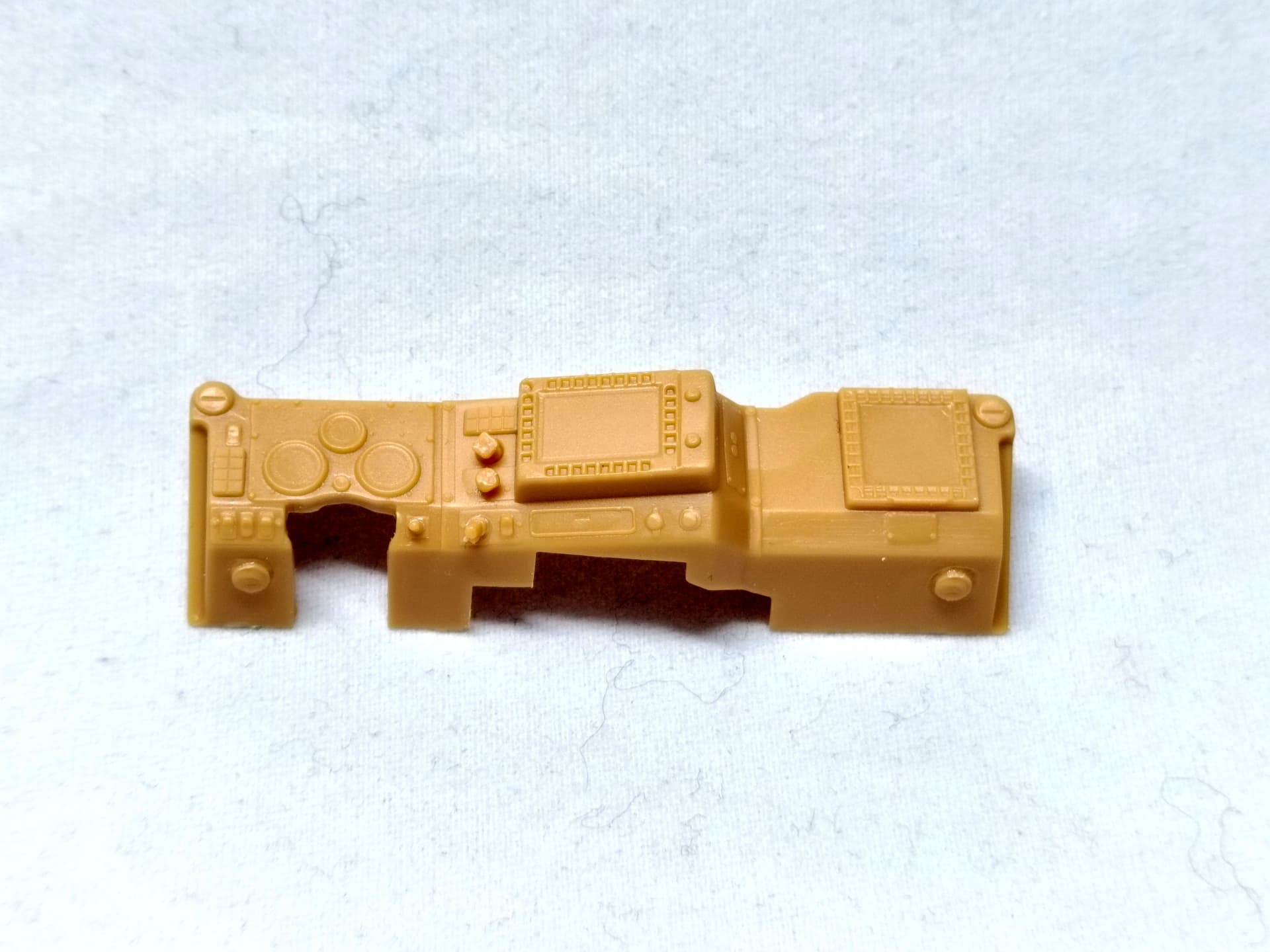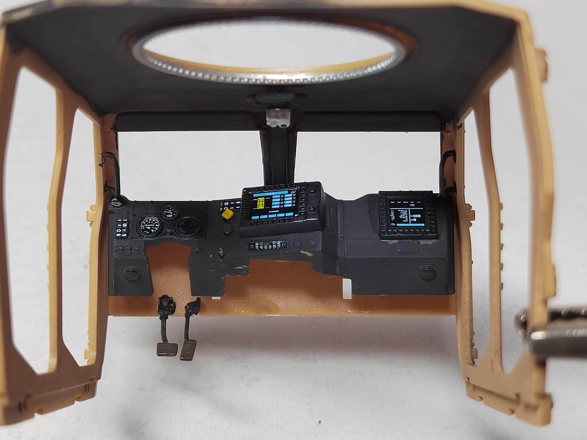 Today I started with the front part of the cabin as per the instructions. However I didn’t glue the dashboard as I intend to paint it first. Some decals are supplied for the dials, the screens and the buttons.