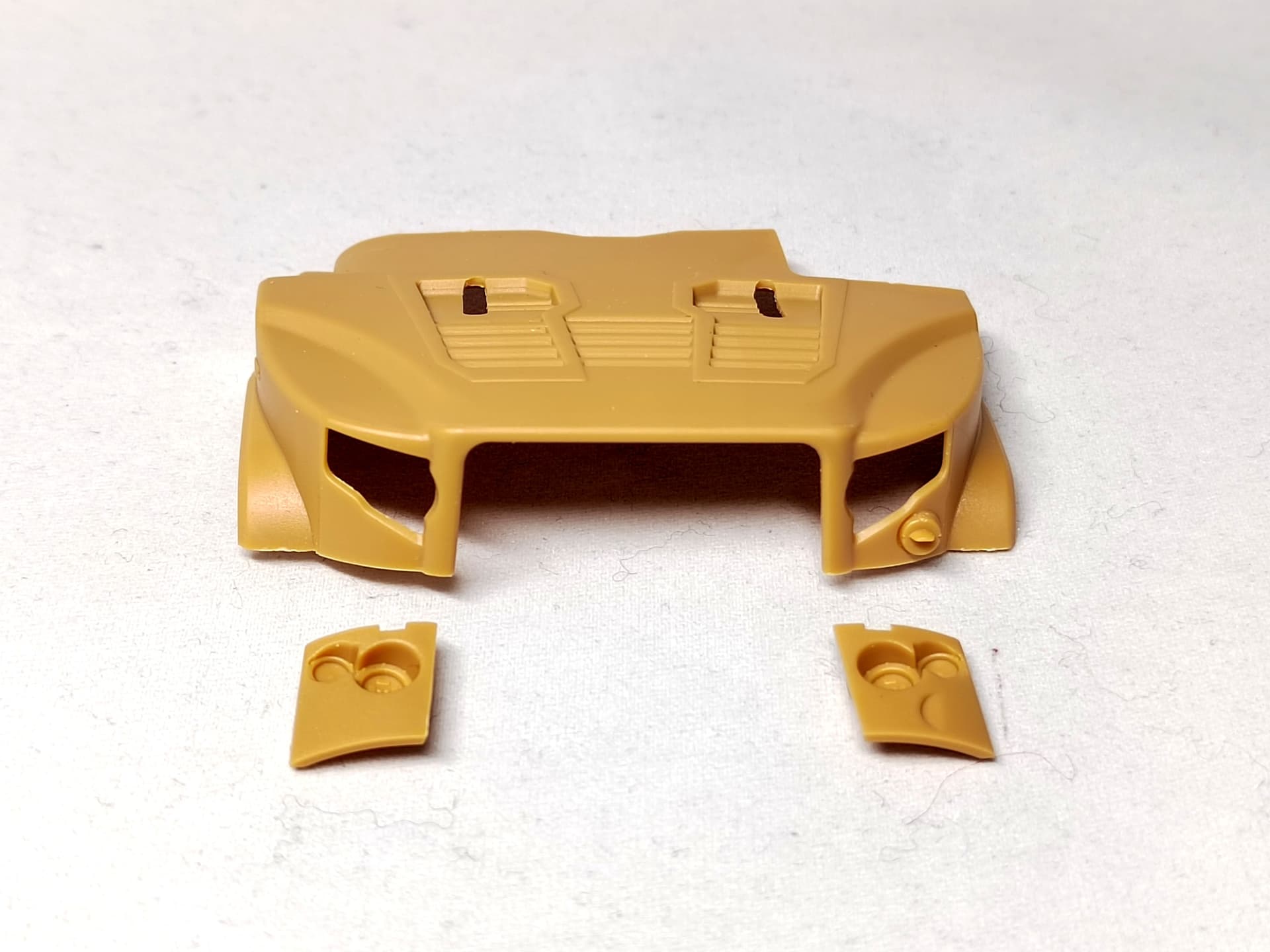 Tomorrow I’ll try to tackle the hood. ILK have you insert the headlights from inside. Not a bad idea as the fit is perfect. However I’ll paint the hood and the headlights housings beforehand. The latter are black.
