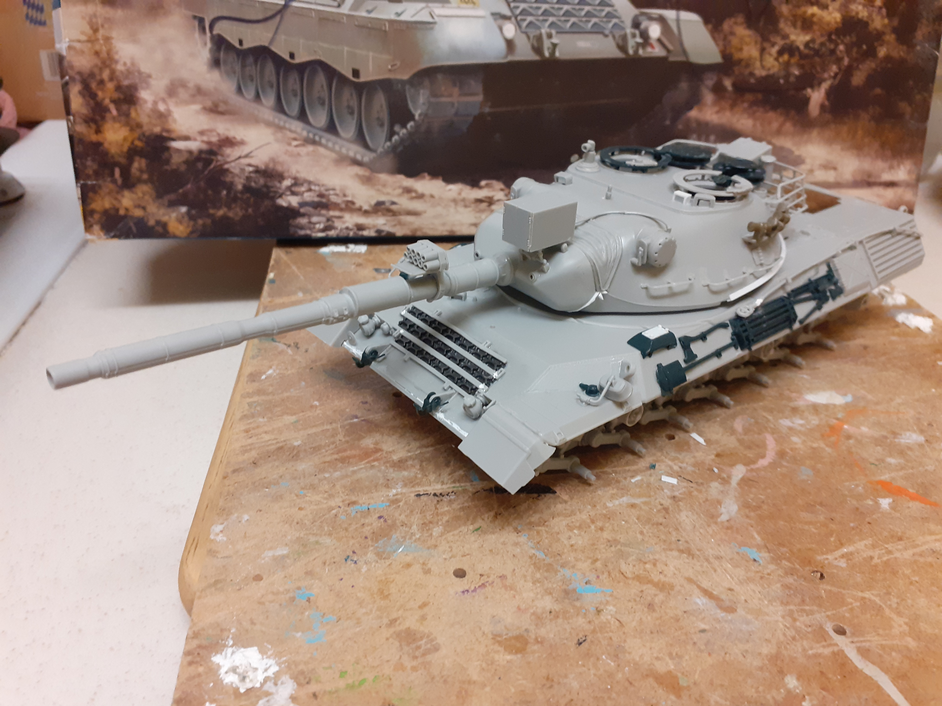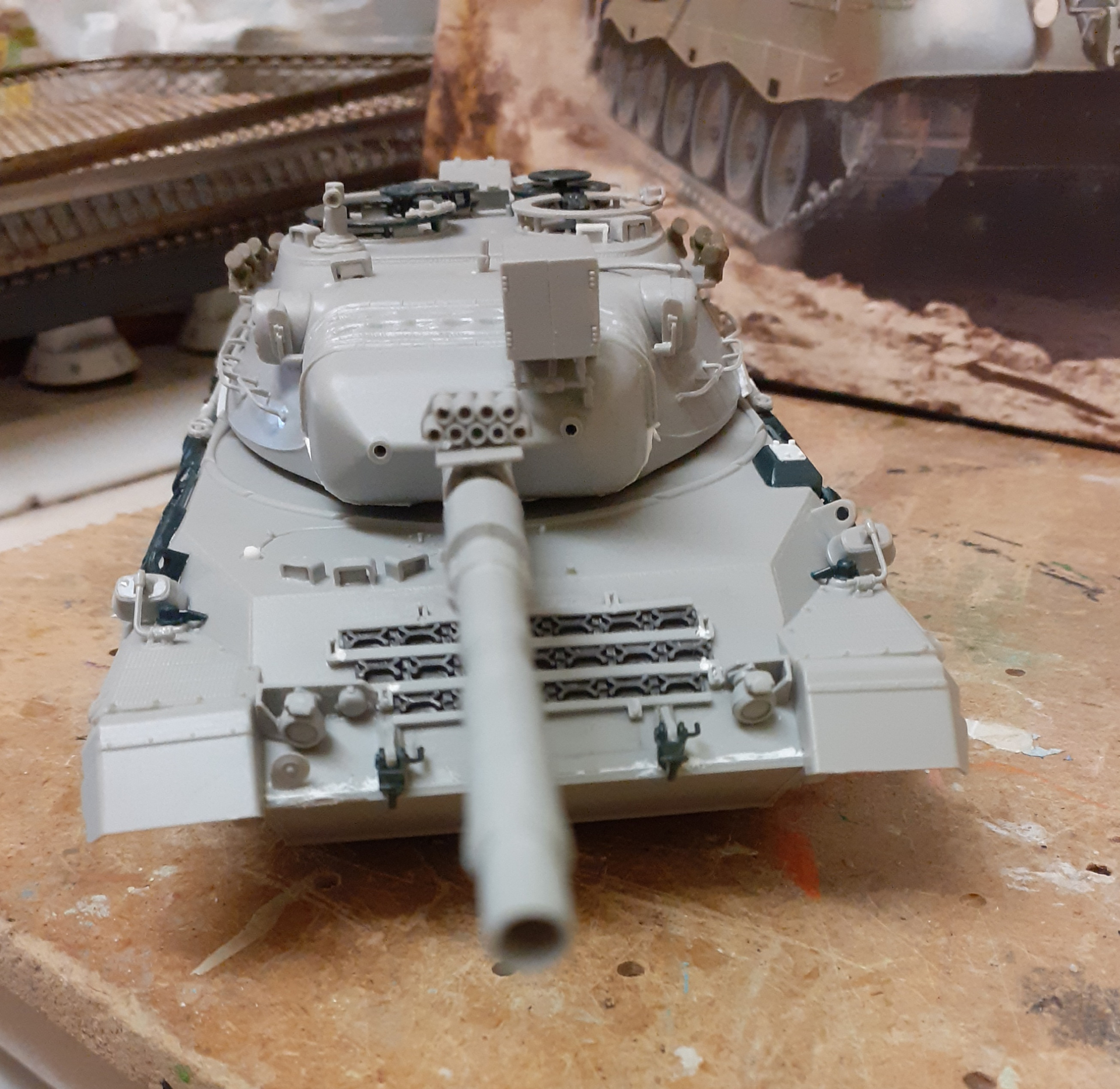 Hi Brian.Thanks for dropping by,Ive got the old Italeri 1A2 kit as well in a lovely sickly shitey brown shade.Im so much of a Leopard fanatic i can see me wanting to do a few Bundeswehr versions from early Leopard up to 1A5.Camo would be handpainted as my airbrush skills are lacking apart from single coats.This one suits my muddled modelling and i can live with rangefinders( Sssh dont tell Michael).I think the Canadian versions are a big favourite and Danish ones.I watch videos on youtube and see them in 1990s on exercise on Zealand with Bundeswehr and Netherlands forces.