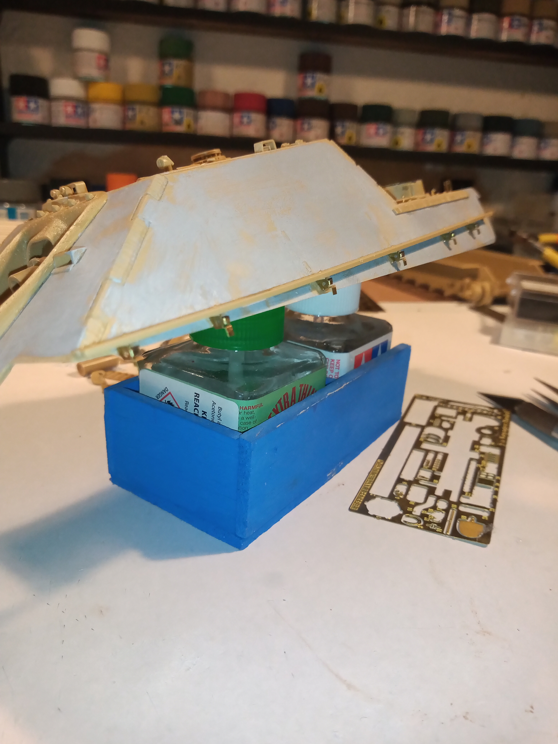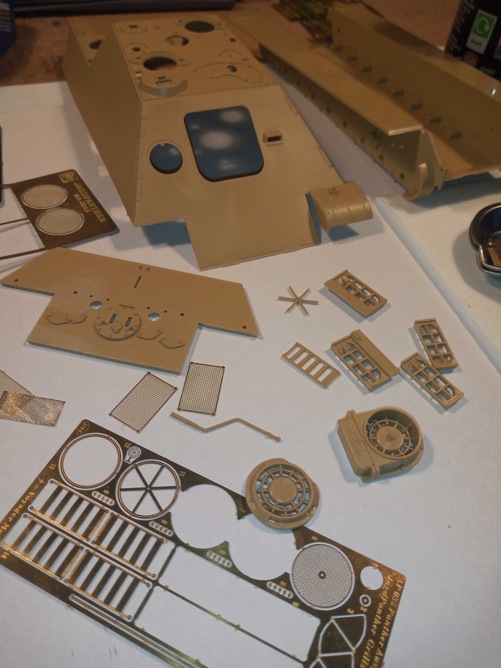 I have lots of spare PE from other Jagdpanther and Panther G builds plus various individual tools. I intend to do a later version with the tools on the casemate rear panel.