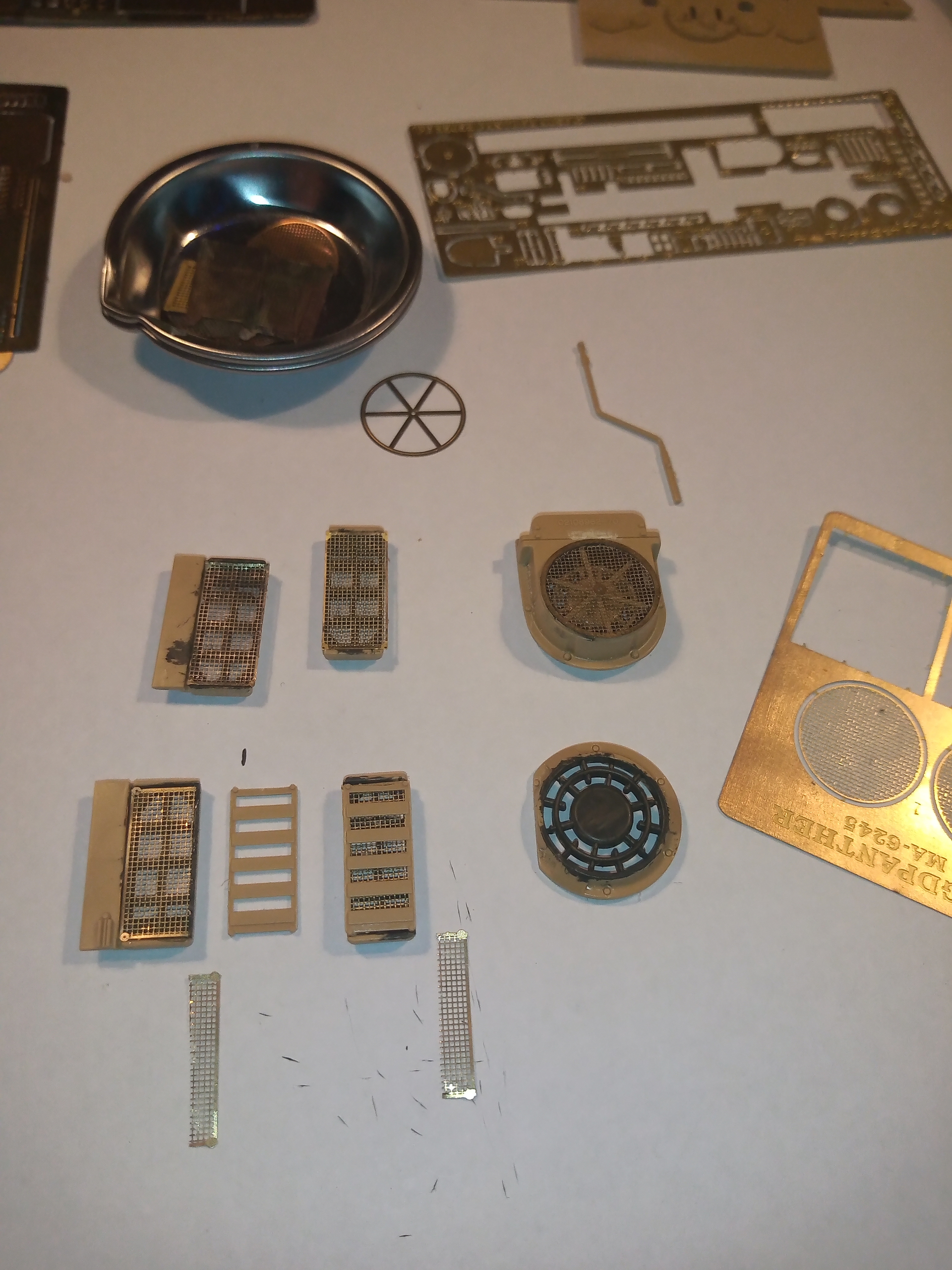 Cheers mate, just working my way through all the spare PE to find out what can used and what kit parts to get rid of. At least one front mudguard will be going and will replace the thin side running boards with PE ones I have … not sure on side plates yet .