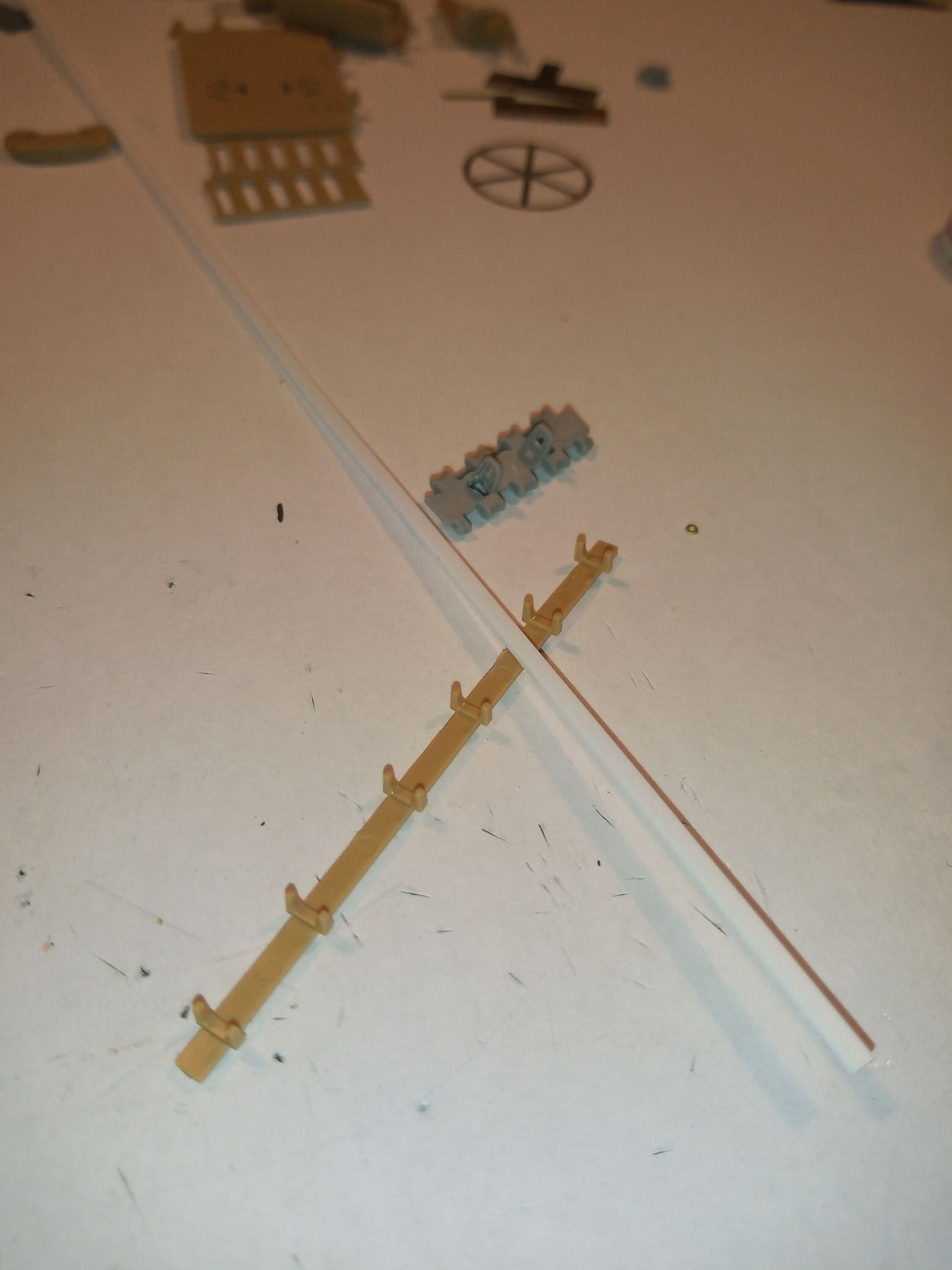 A bit more time consuming was going through the various PE spare frets looking for usable brackets and handles and other bits to use. Luckily I have found most that I will need so should only need to scratch a few parts here and there, such as the jack support and engine deck securing hook etc.
