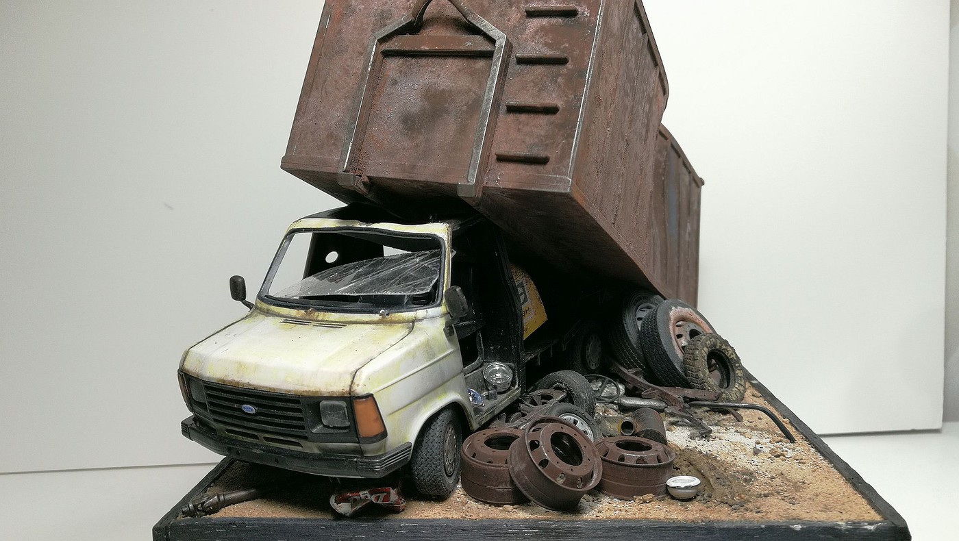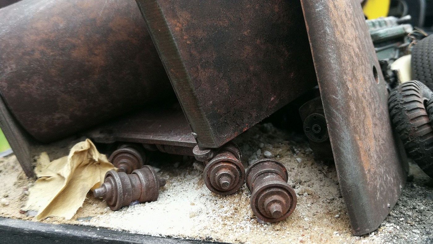 I have been testing out more weathering techniques in combination with diorama placements. Trying to make smaller diorama compositions but still trying to maintain, an overall cohesive look. I have just completed grinding the tyres(these photos were taken before doing it), and fixing the sink holes on the container. But so far I think it looks good.