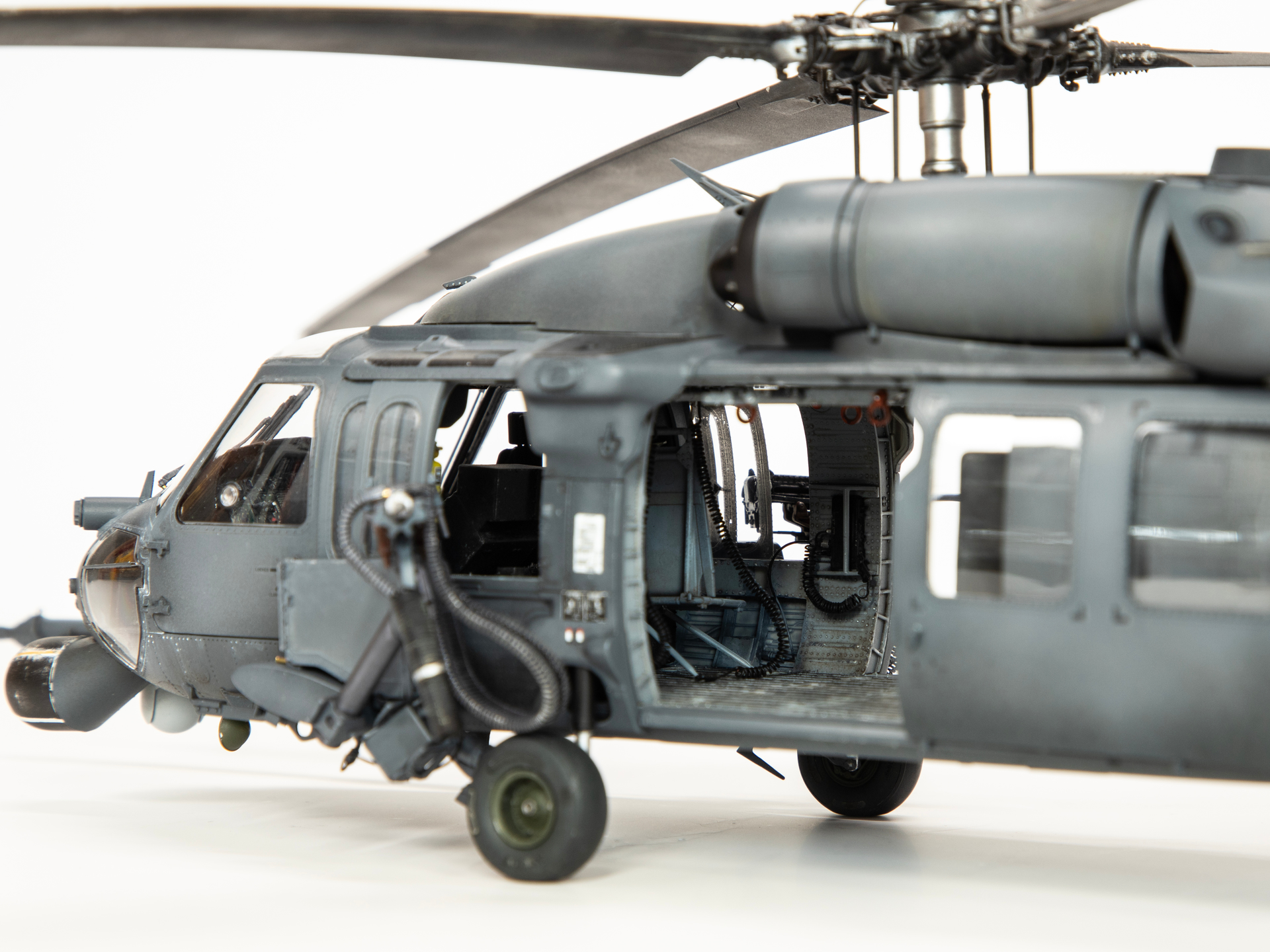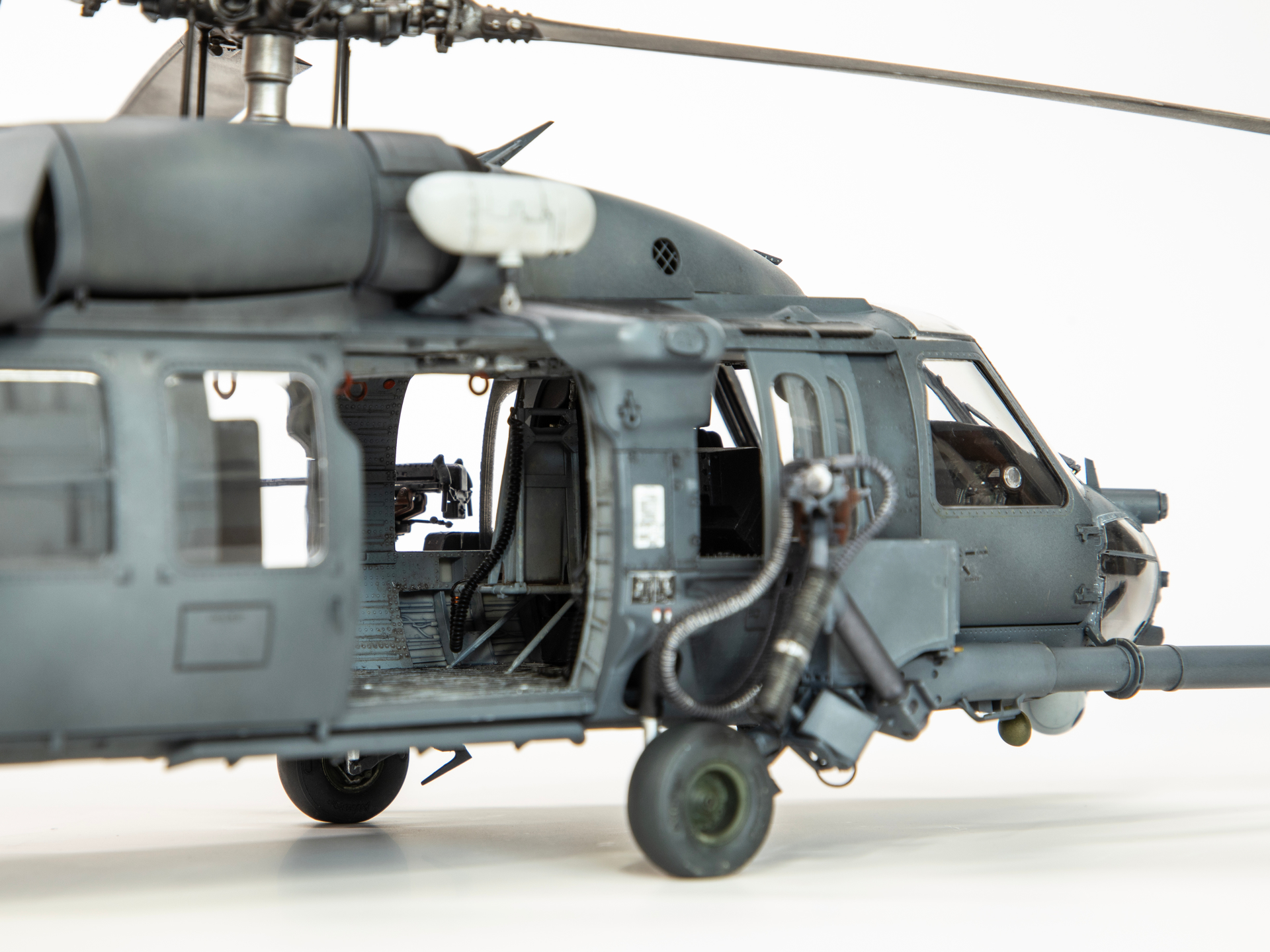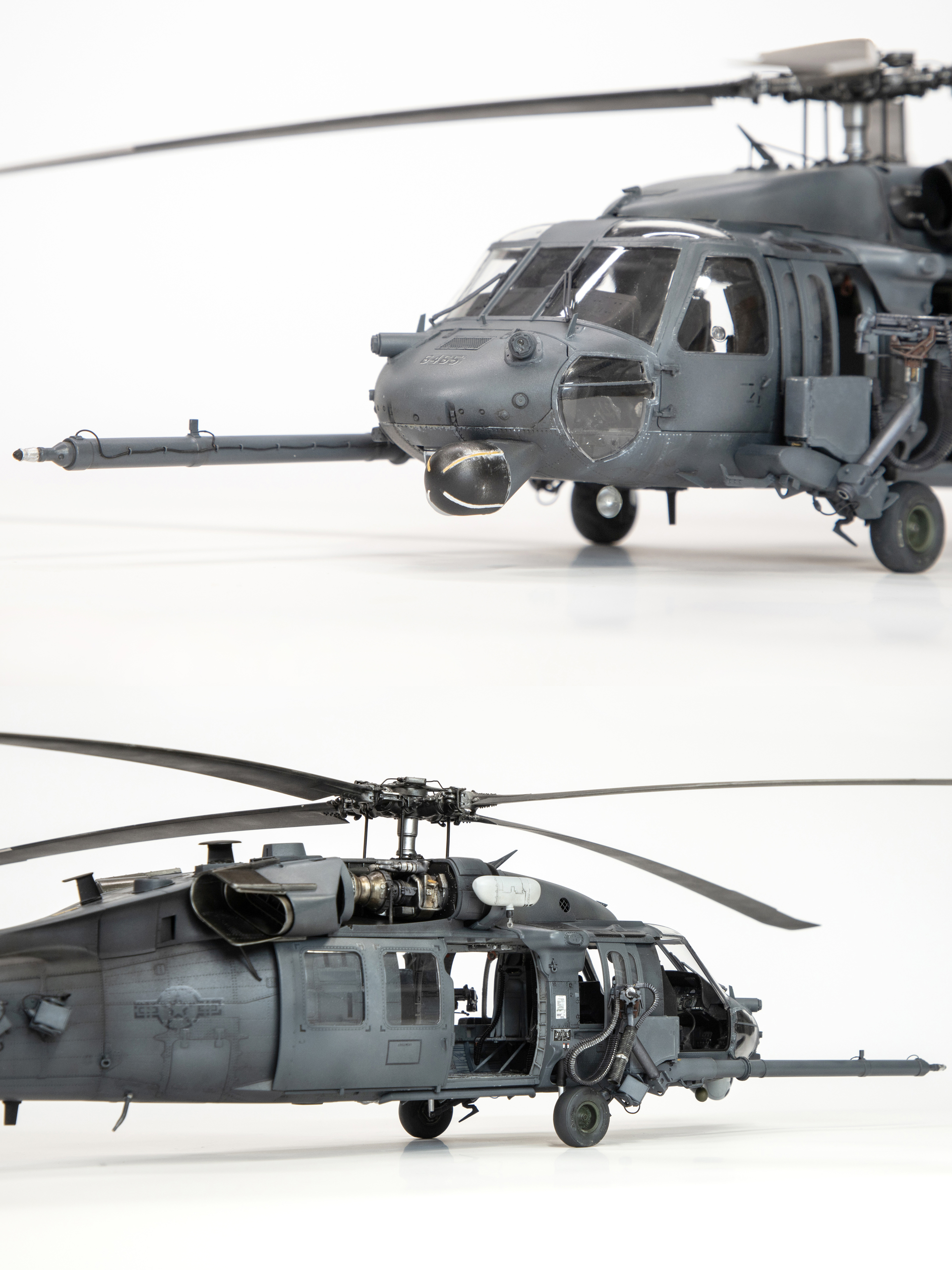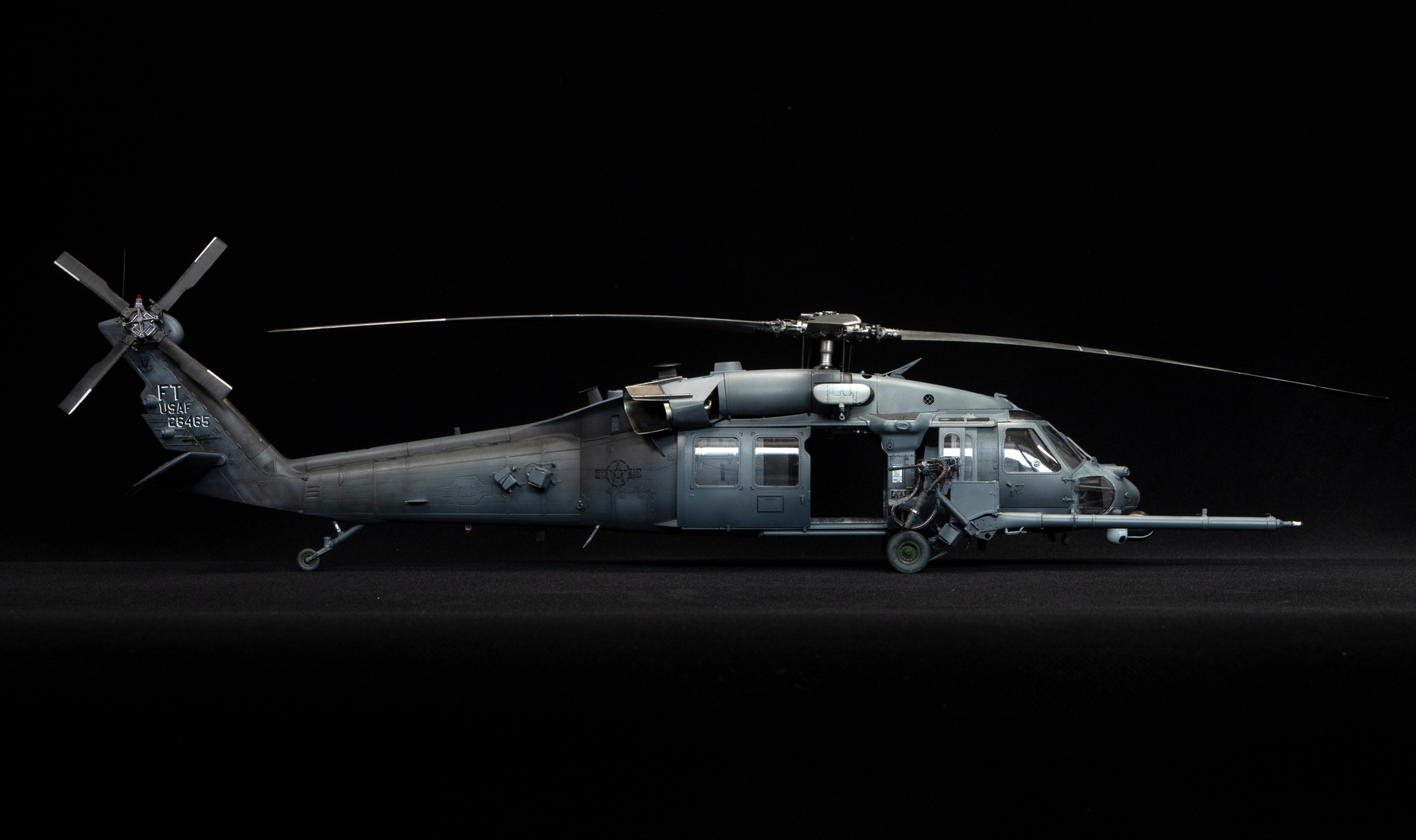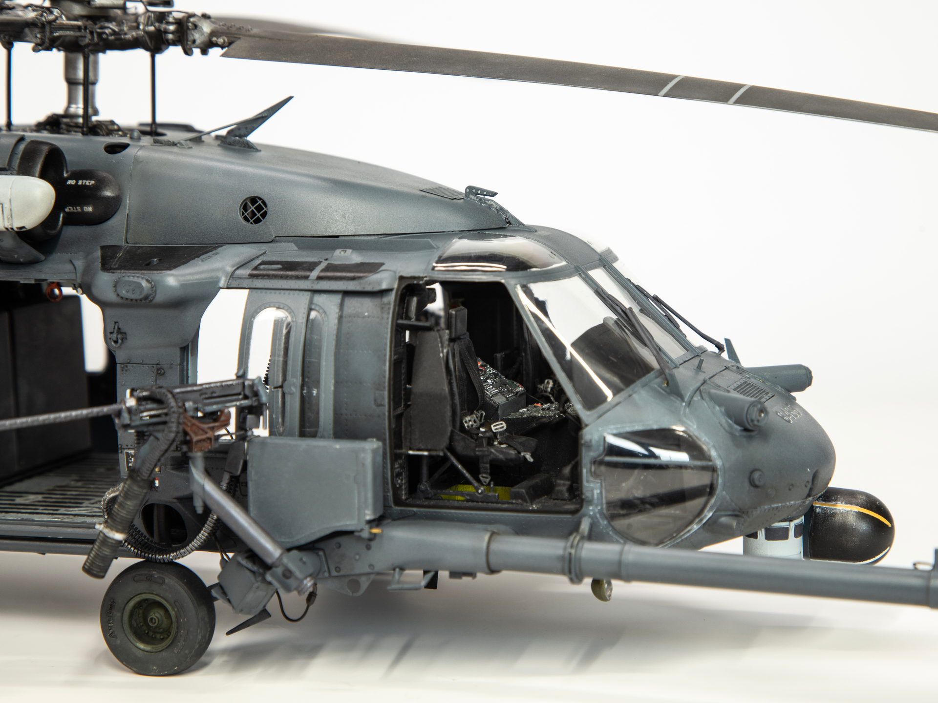 Hi, my name is Wang, I’m from China. This is a 1/35 HH-60G Pave Hawk helicopter that I recently completed. I made some modifications, such as adding a refueling probe, chaff, and machine gun ammunition belts. The decals that came with the kit weren’t very good, but I solved it by using a hot air gun.Thank you for watching!