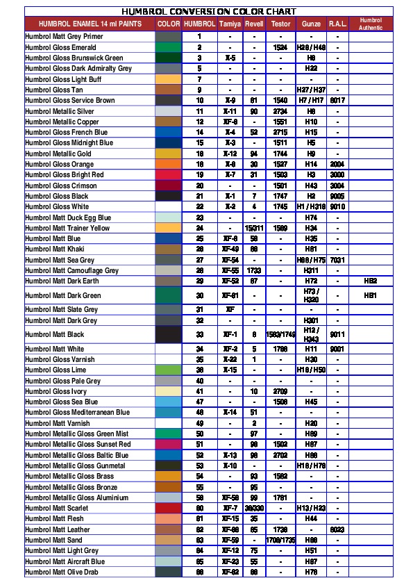 I assembled 3 parts last night and the fit was great, the plastic nice to work with and the detail superb. The only thing I do not like this kit shares with the other new Airfix kits. The color call outs are in Humbrol numbers only. I like Humbrol paints but have bottles from other makers as well. I looked online for a simple Humbrol number call out sheet that I can print out and keep on the workbench but have so far found only limited lists, most of which need a color printer to be fully useful. Does anyone know of a simple number lookup that is fairly complete?