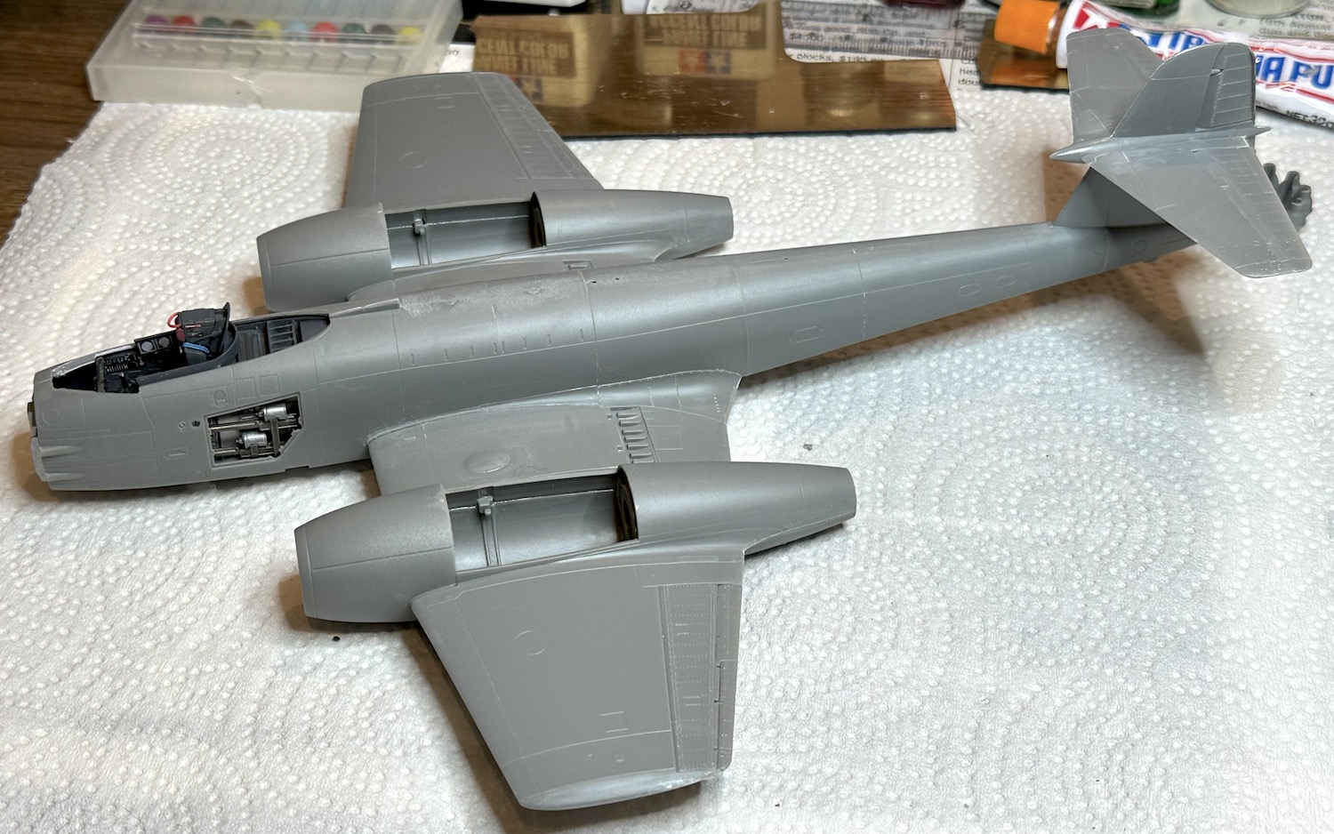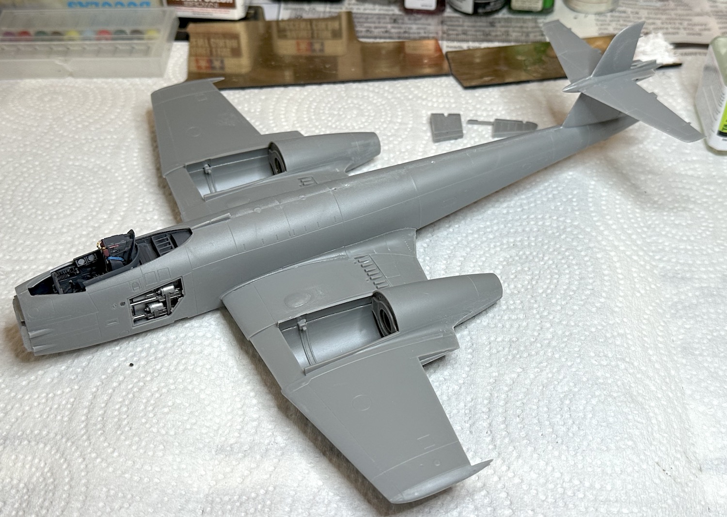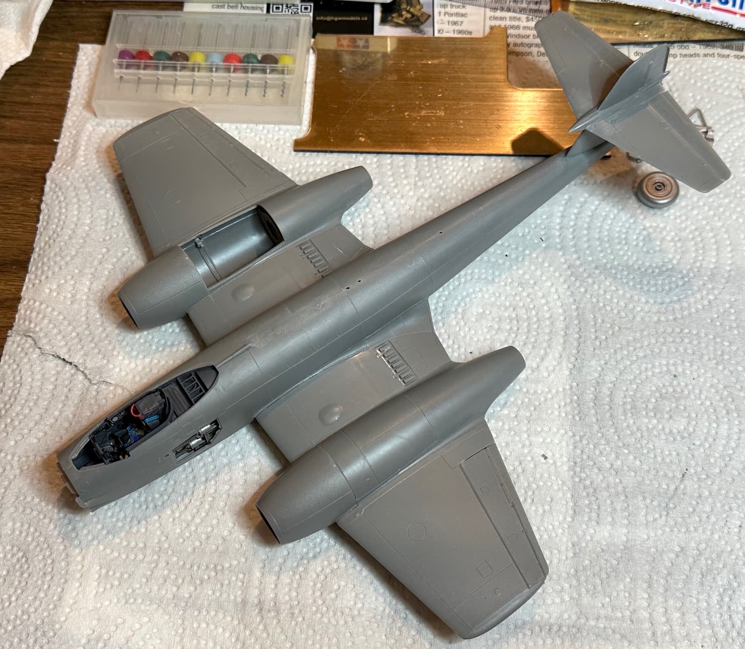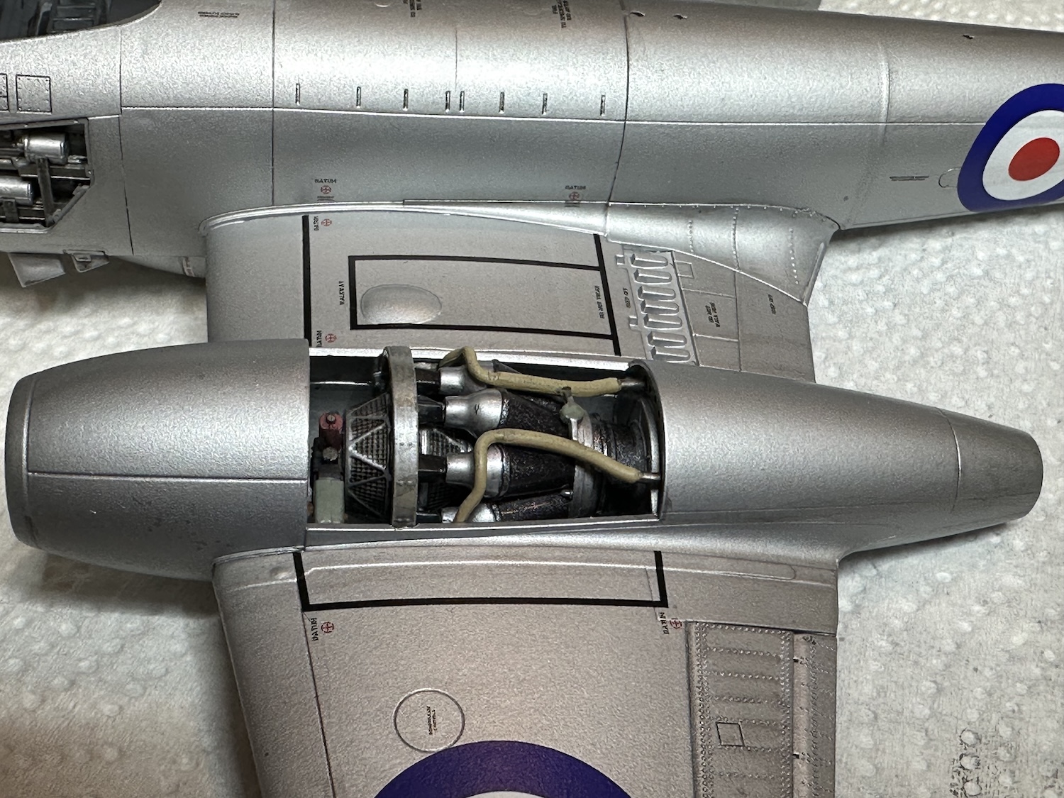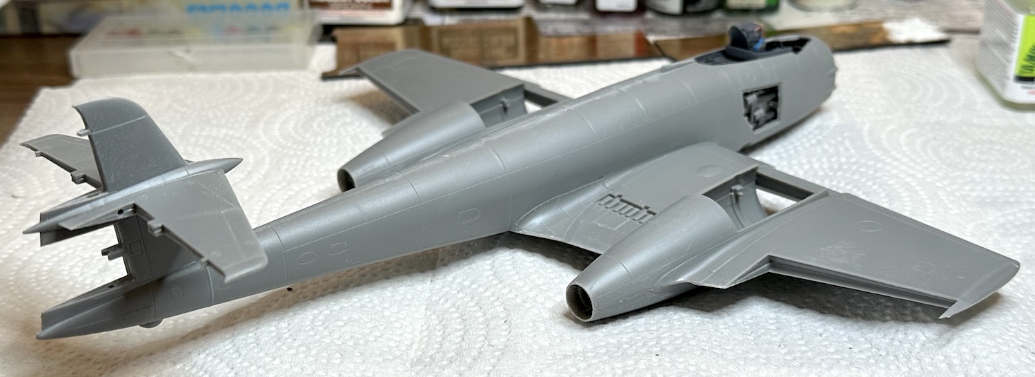 Another report on the Airfix Meteor. While most everything has been great, there are some sinks in places. The rockets all had sinks in the same places. They needed several coats of putty but came out well in the end. I also opened up the rear to simulate a rocket exhaust.