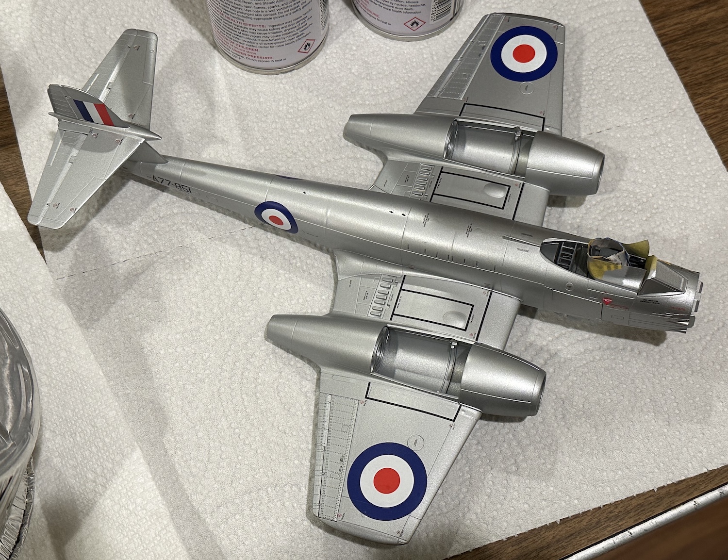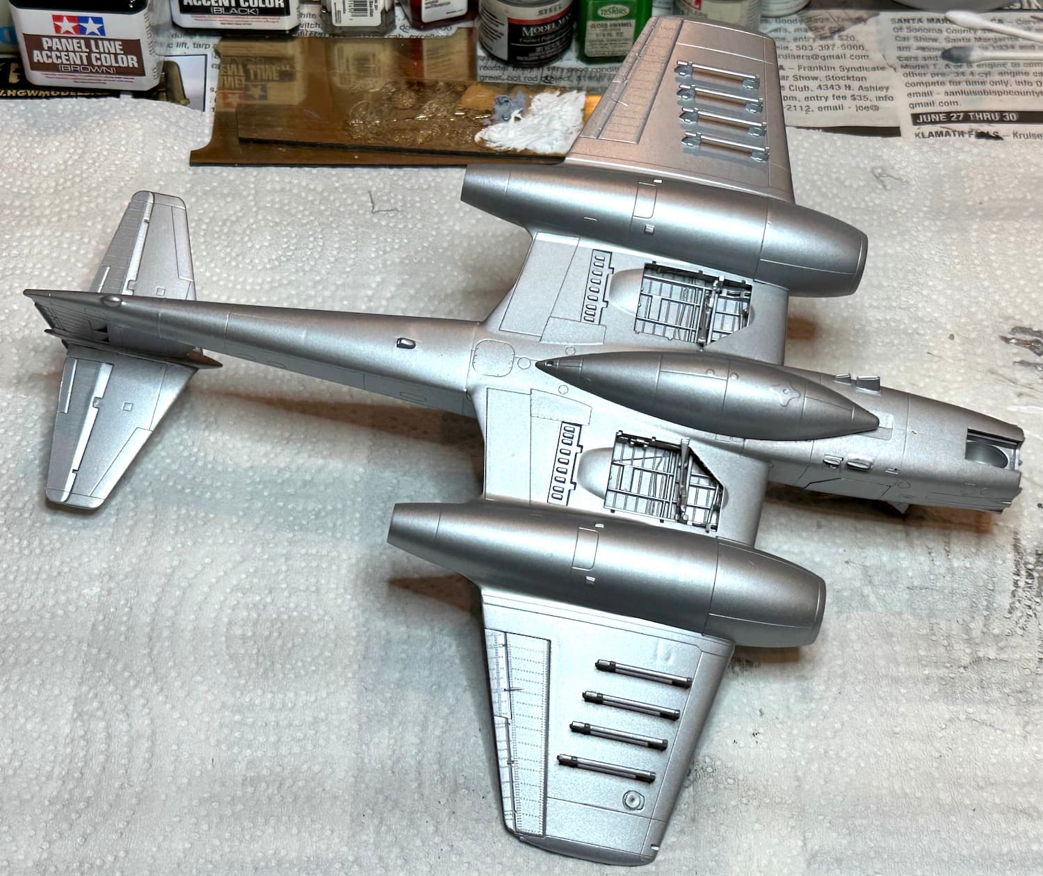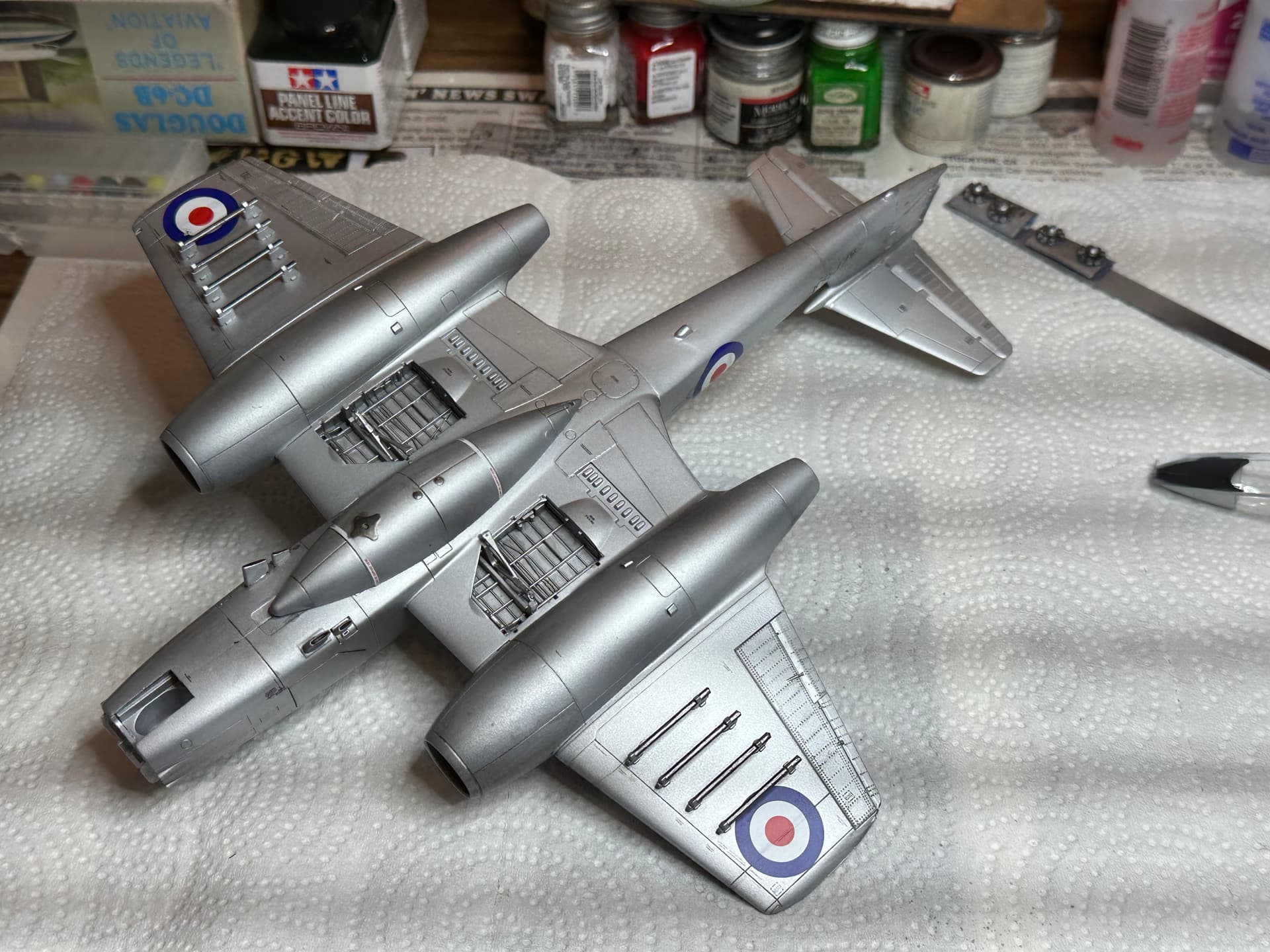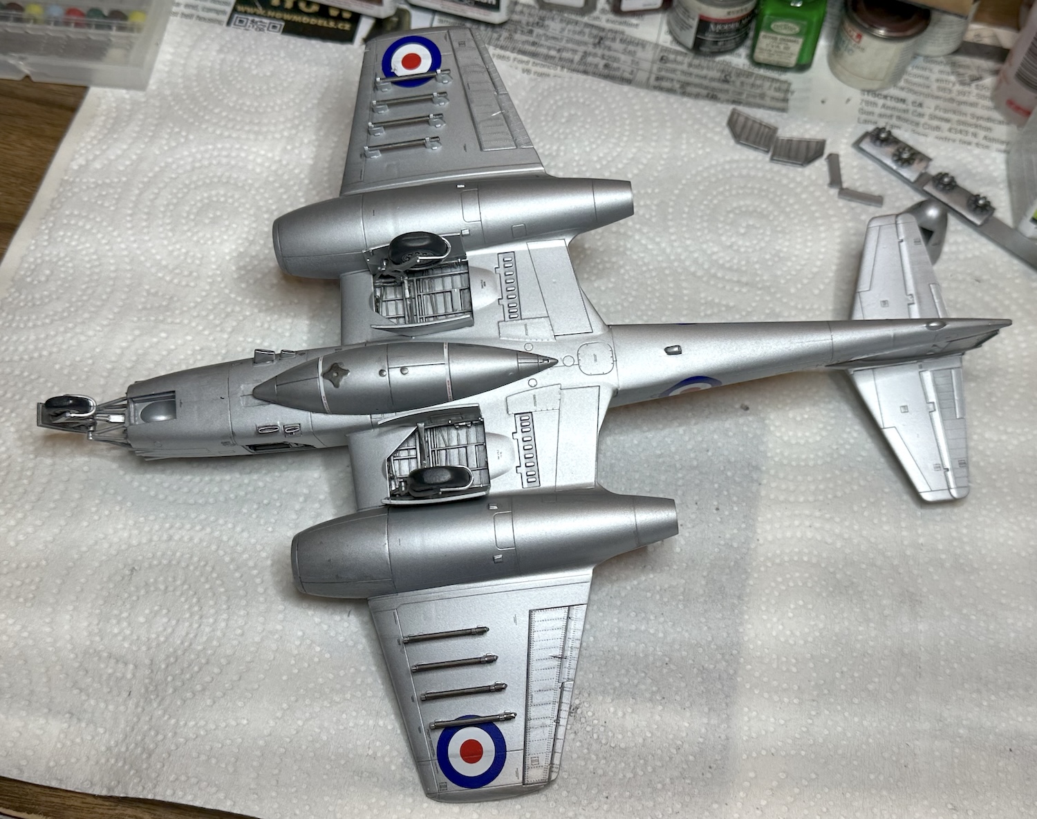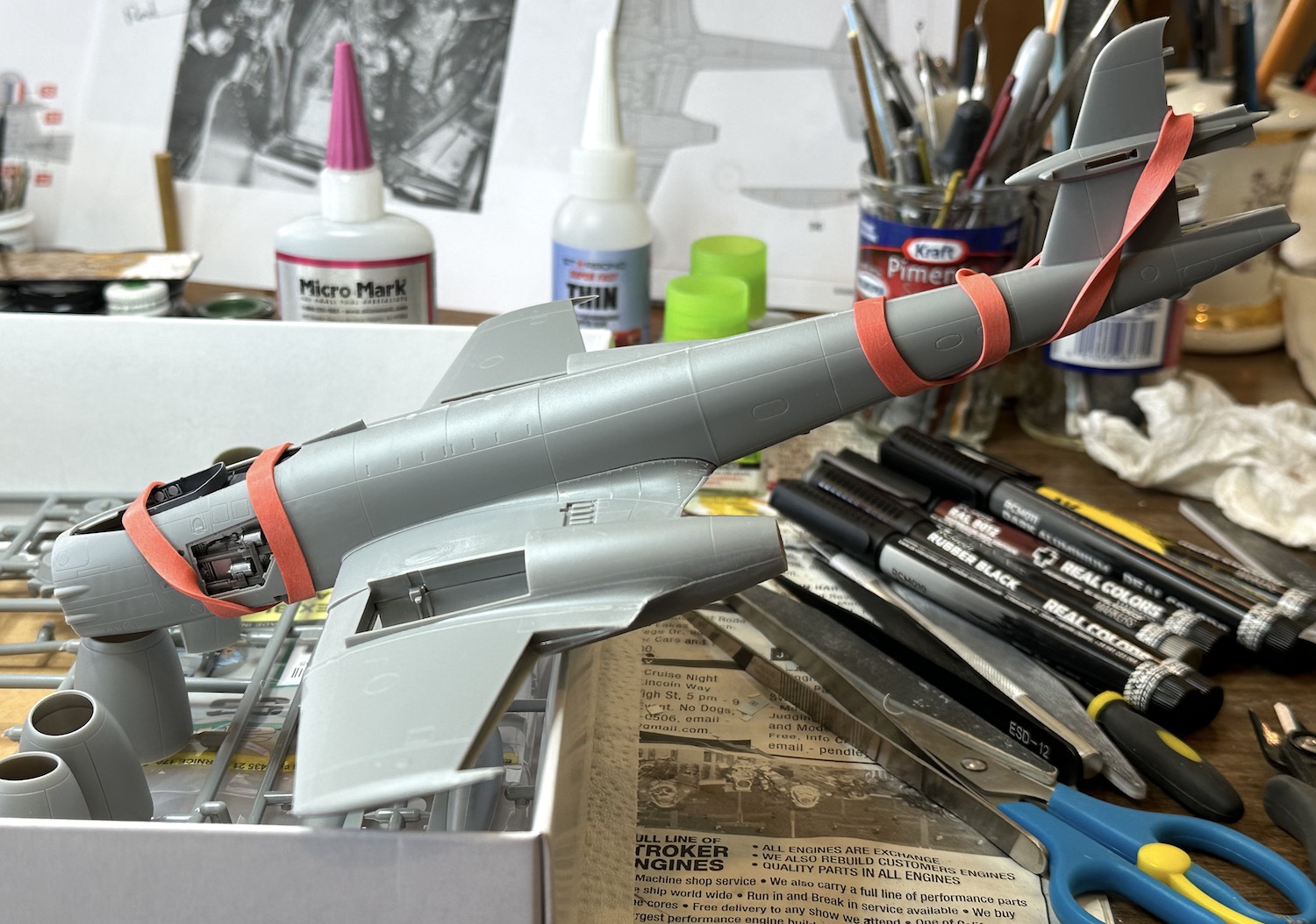 Another report on the Airfix Meteor. While most everything has been great, there are some sinks in places. The rockets all had sinks in the same places. They needed several coats of putty but came out well in the end. I also opened up the rear to simulate a rocket exhaust.