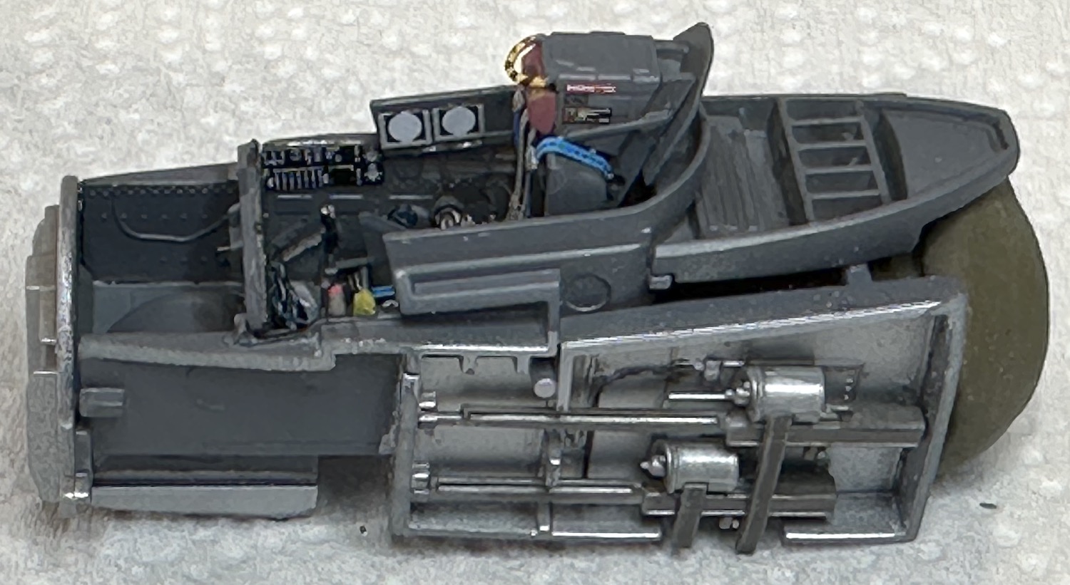 The cockpit with the Eduard PE was a joy to build and is a joy to see nestled in the fuselage. The belts on the seat were by far the most time consuming part.
