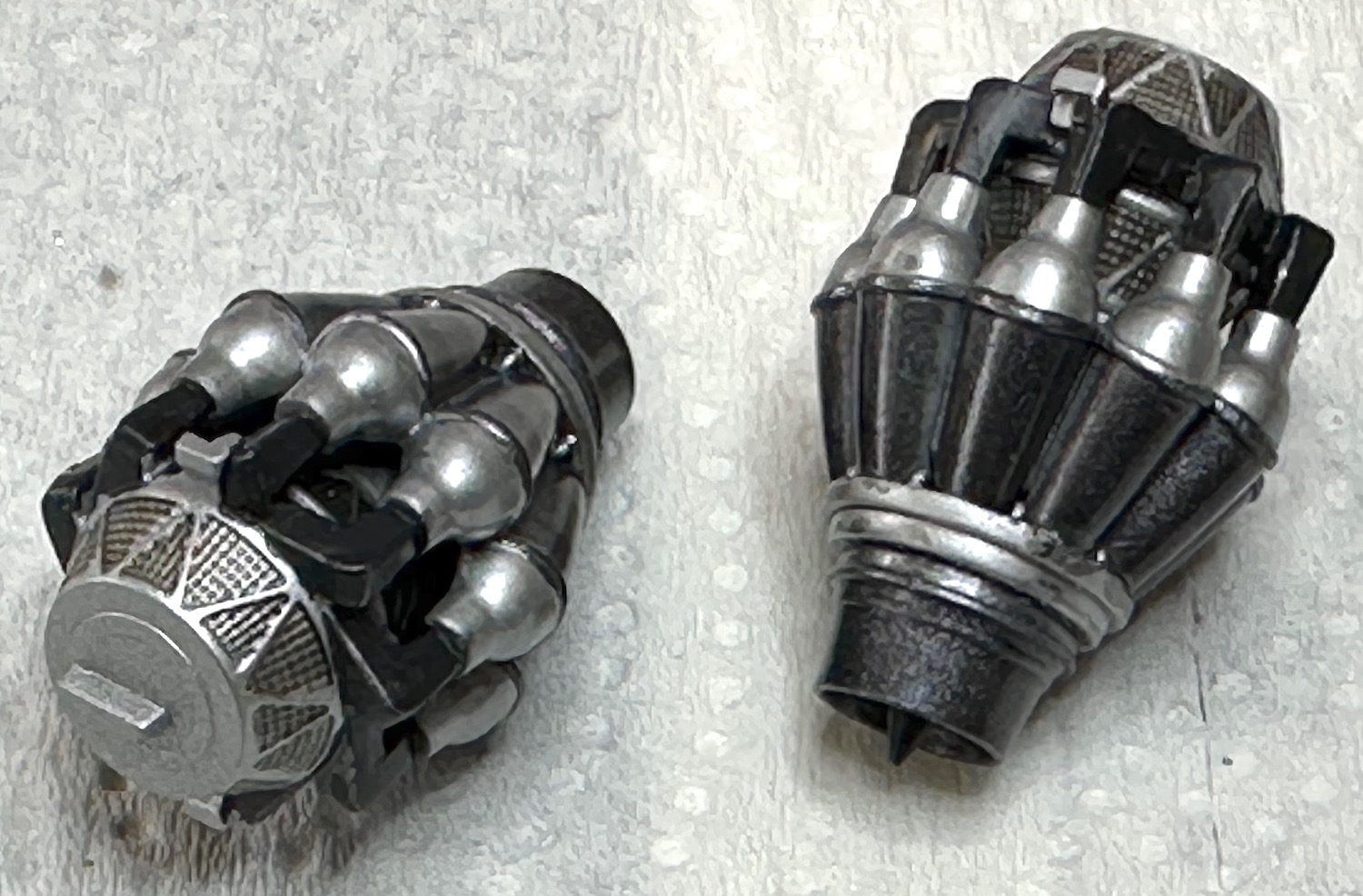 The wheels have fenders just like a British motorcycle of the period and just like the motorcycle fenders, they are one piece. Airfix choose to split them in halves making a smooth result far from certain. Complicating this, the painted wheels needed to be trapped between those halves. The fit was tight and with some light sanding and hand painting with an AK AL marker all three turned out well. The tires, are molded with flat spots so there is no need for aftermarket items.