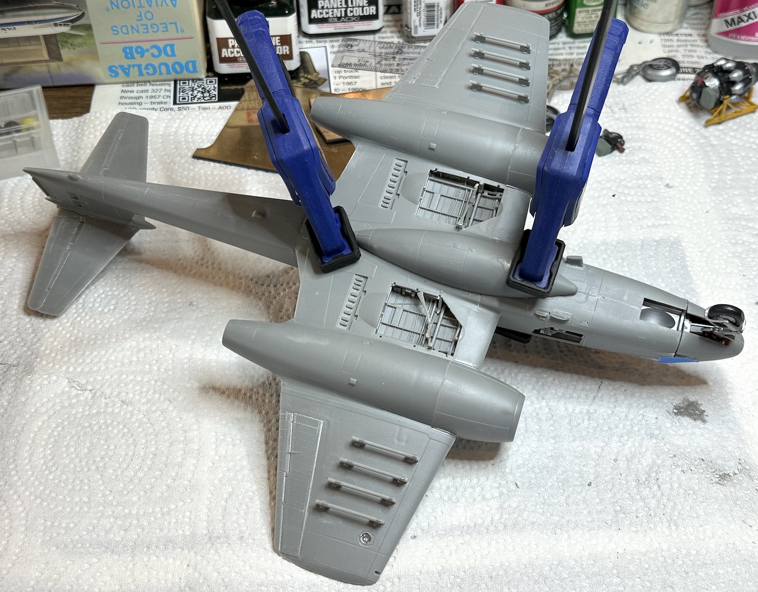 All looked good and it was time to commit to glue the major model parts. The fit of this kit was tremendously good. With few exceptions, there was only minor adjusting required. What joy! Even the engine covers were flawless.