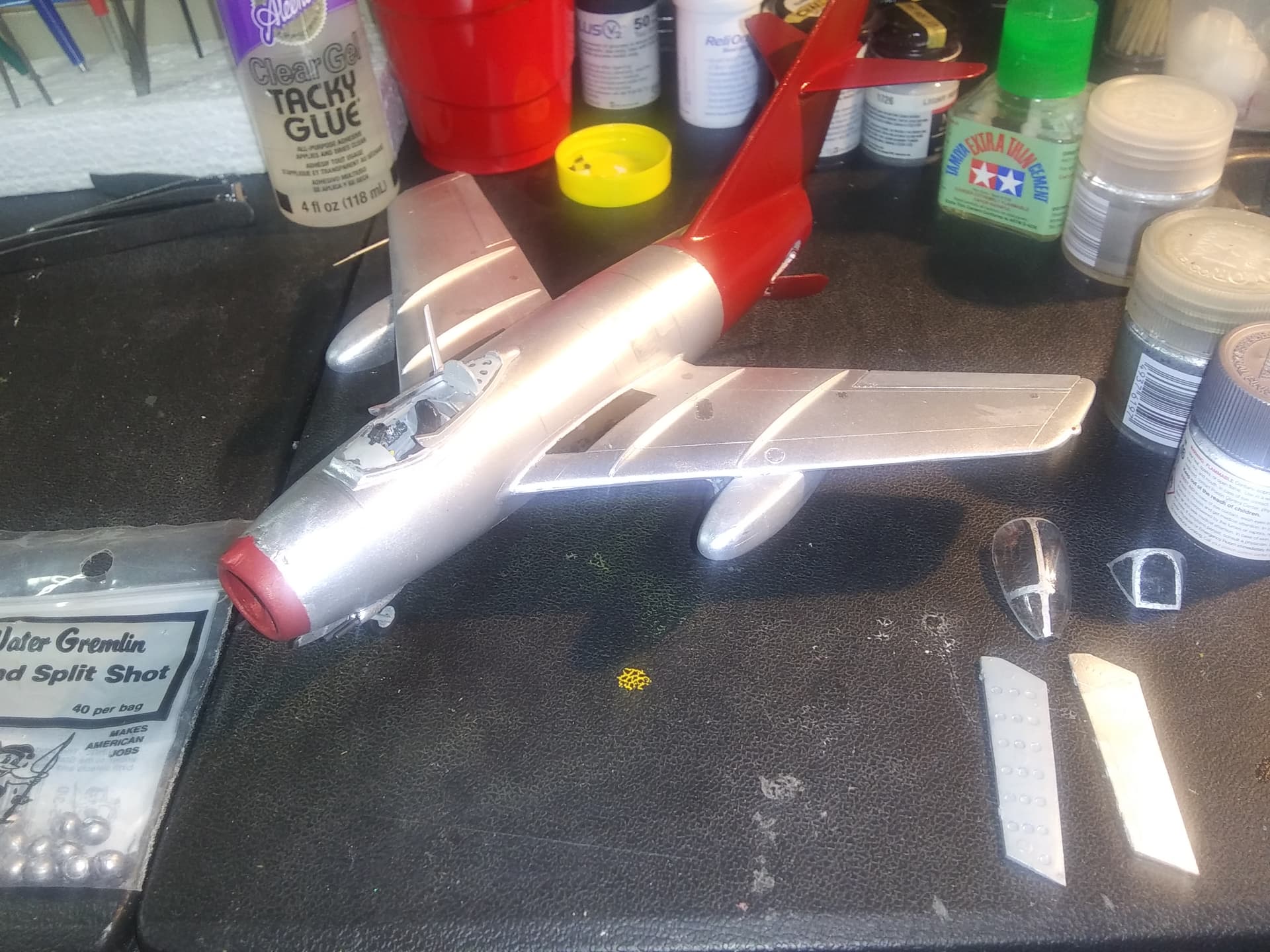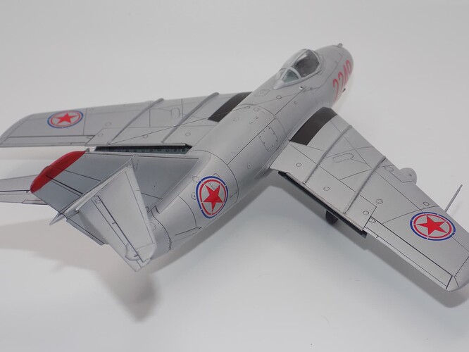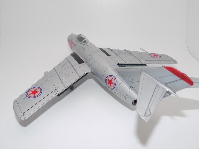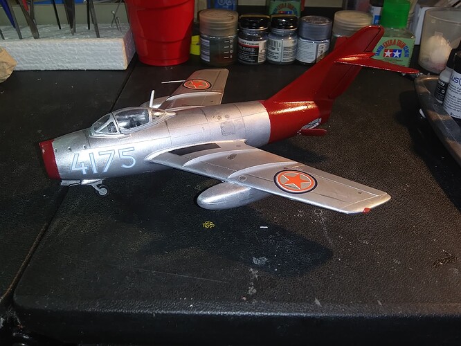 I’ve almost finished the Monogram MIG-15, except for giving it a wash, some oil staining, fixing the canopy and a dullcoat to bring down the glossiness of the red. I’m not happy with the red of the decals, but it is what it is. I’ll post pictures once I’ve cleaned it up.