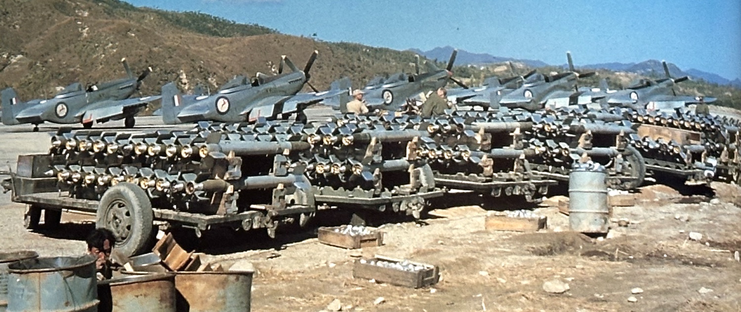 The next issue was the rockets. Airfix would have us paint the body flat black and the warhead silver. Not only did that not seem right, it was boring! I looked through my library and came up with two shots that decided the issue: