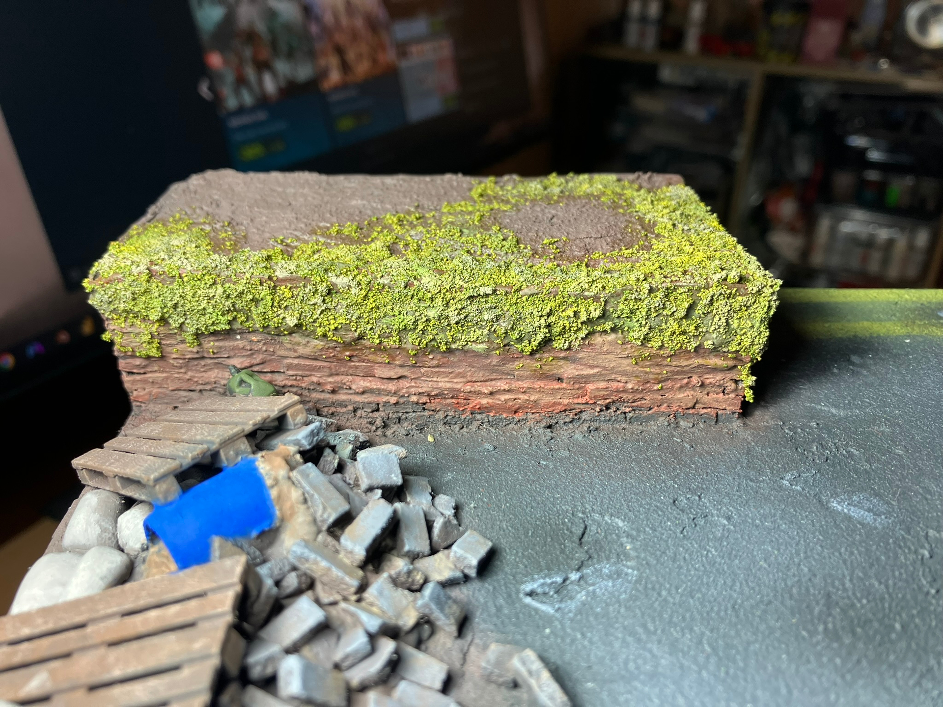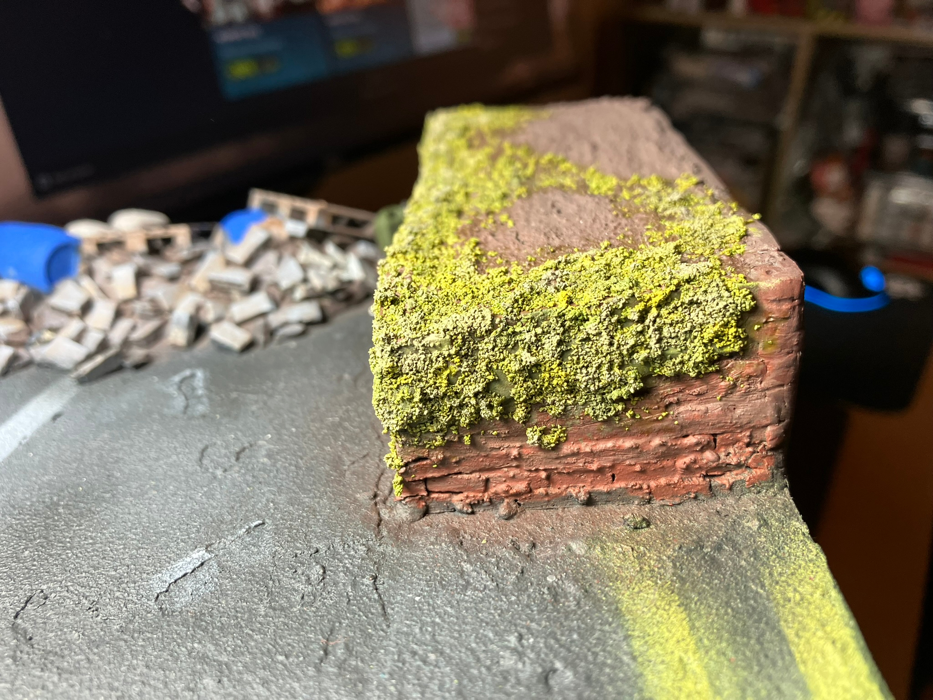 So it needed some solution, and to me I thought I might be able to make it look like it was overcome by plants. Looking at the tufts I have that wouldn’t work but I then though Lichen / Moss might be doable & not look too crazy.