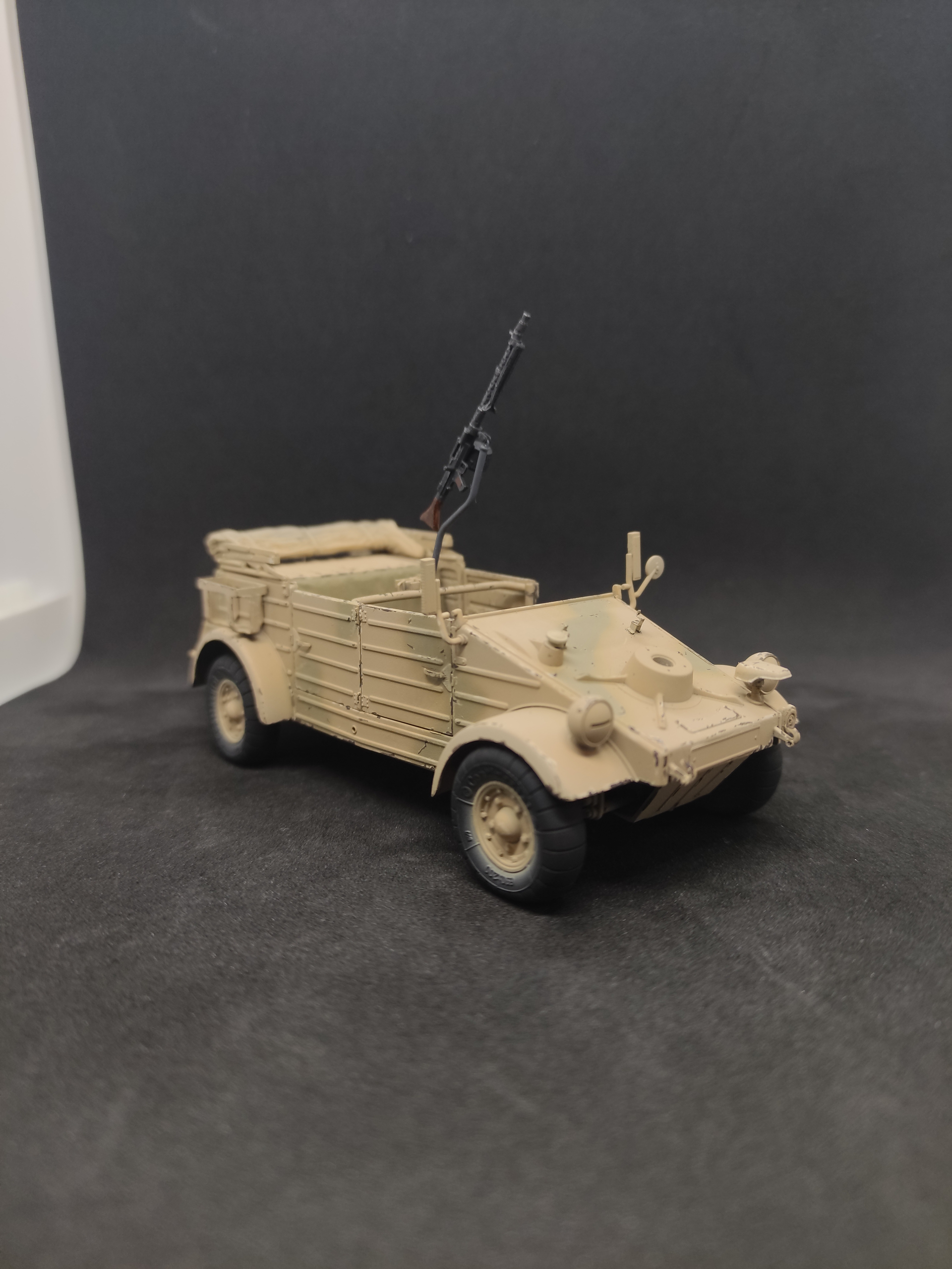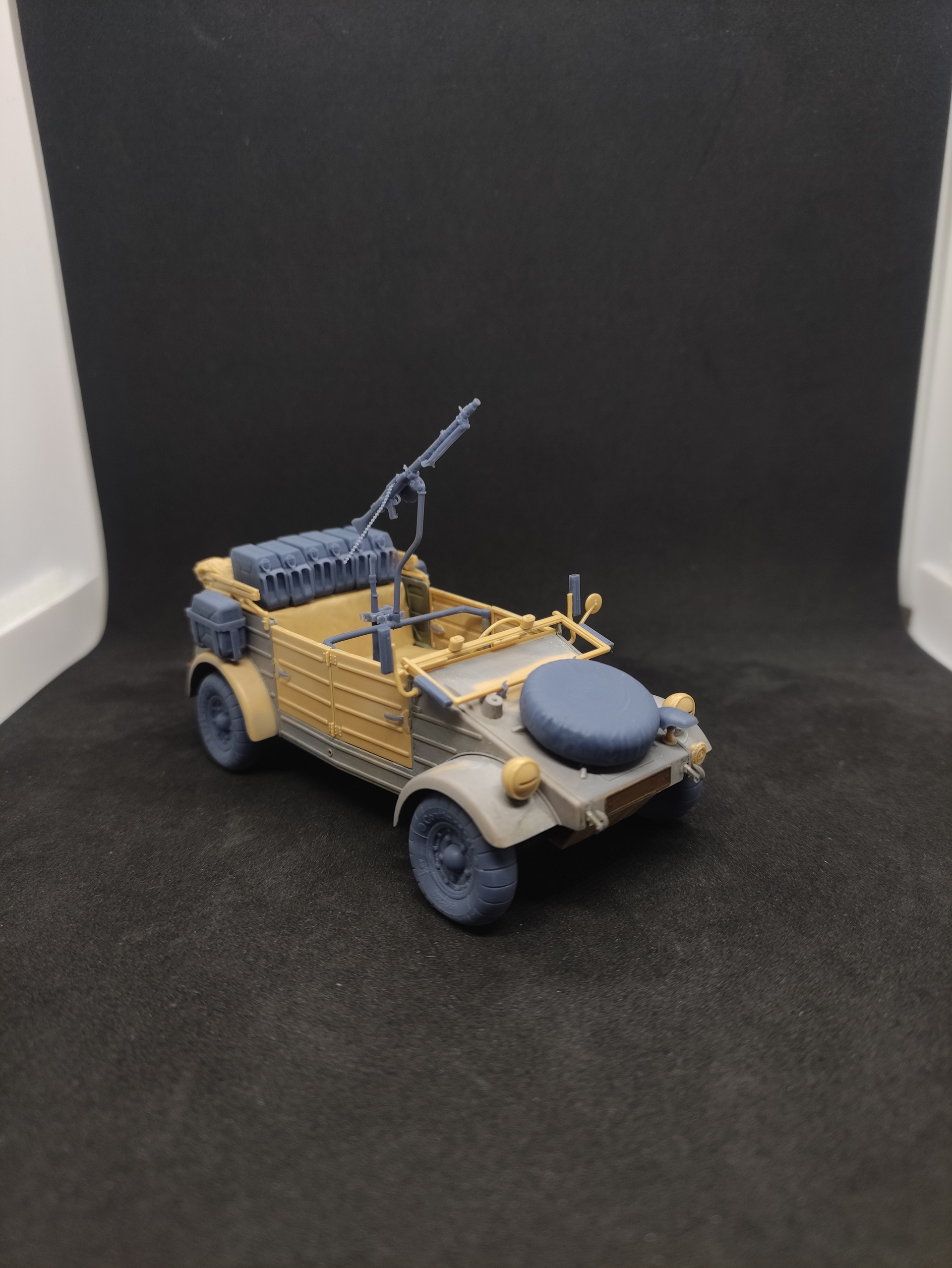 MG34 looks good on the mount, some fuel and water jerrycans, also I will add tarps and other stuff on the back. I will adjust the empty belt later.