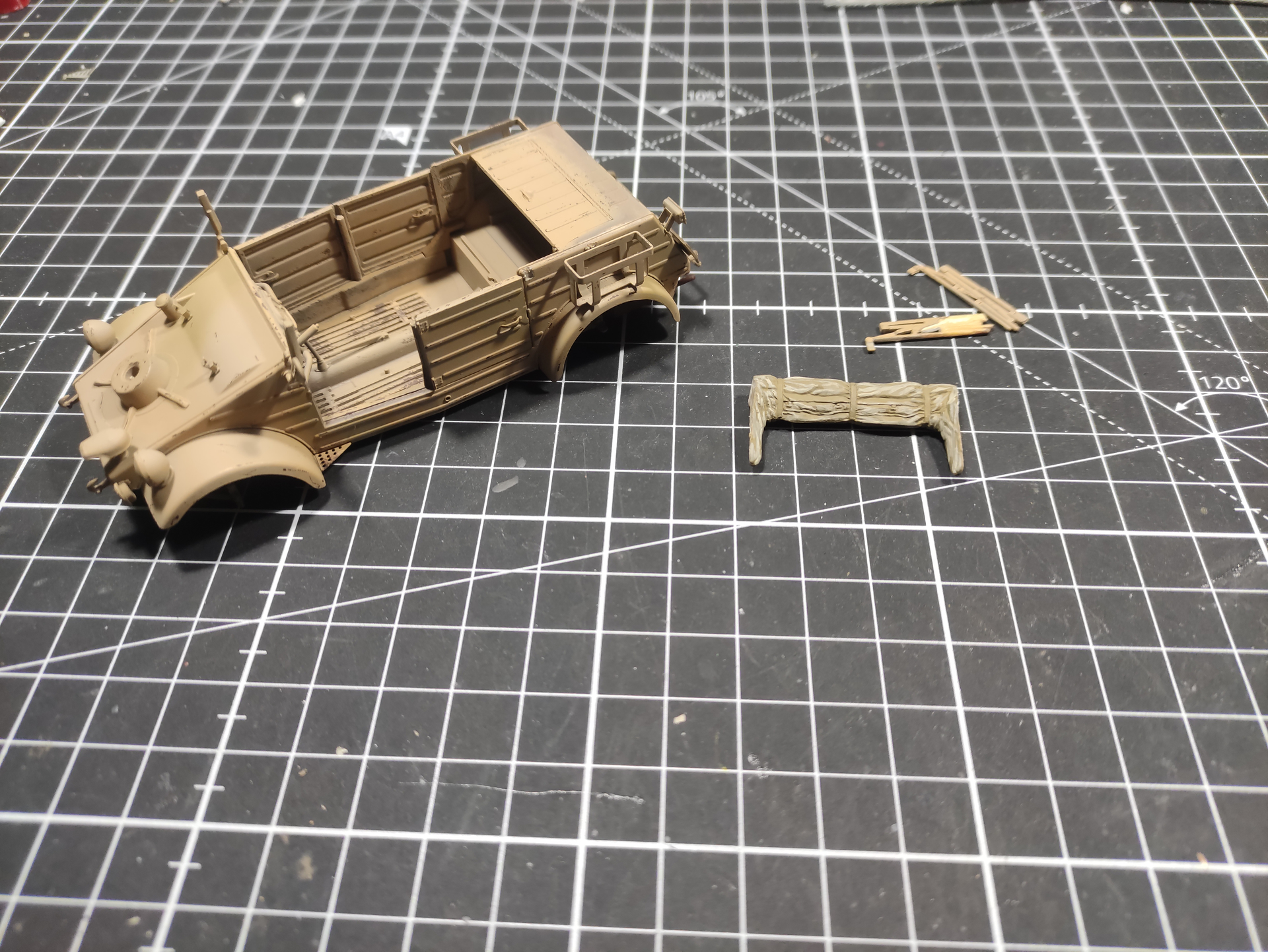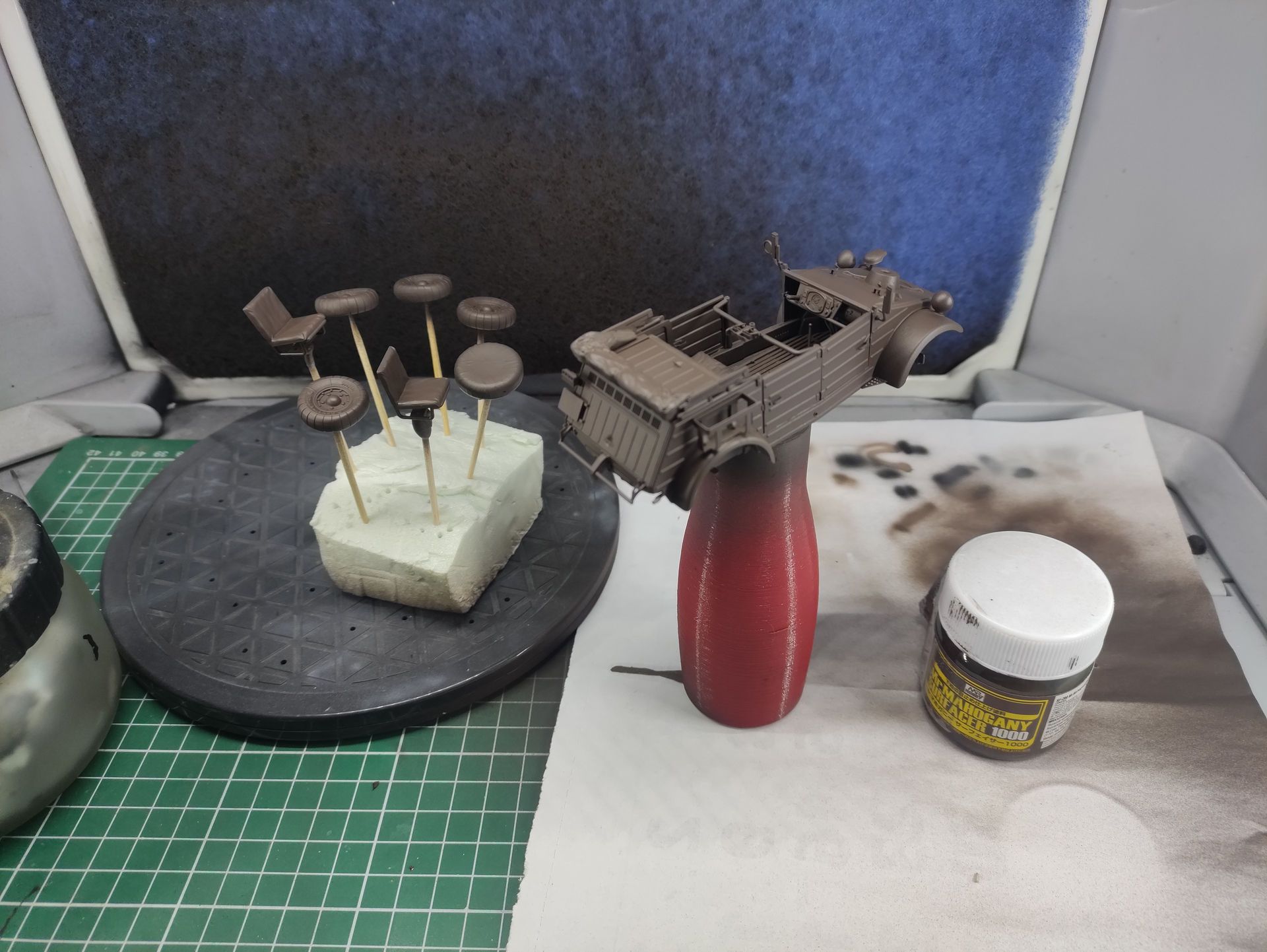 Had time to put mahogany surfacer and Tamiya DAK light brown 1942 for the base color (RAL 8020). It has slight pinkish hue, which I can’t catch well on the camera, imho is very nice match. I will make some highlights here and there.