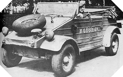 In this condition or similar, such a Kubelwagen could have been driven on the Italian front in 1943+. Vehicle parts were often cannibalized due to a shortage of spare parts. It was common to find parts from different years of manufacture on the same vehicle. New parts for this Typ 82 did not make it in time.