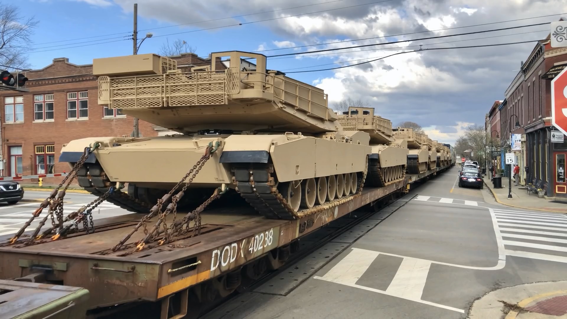 “The train with M1A2K Abrams tanks is in LaGrange, KY on the Short Line from Cincinnati, OH. The M1A2K ordered by Kuwait can be identified from the Auxiliary Cooling and Power System, the Counter Sniper Anti Meterial Mount for a barrel mounted and turret serial number w/ suffix Ē.”