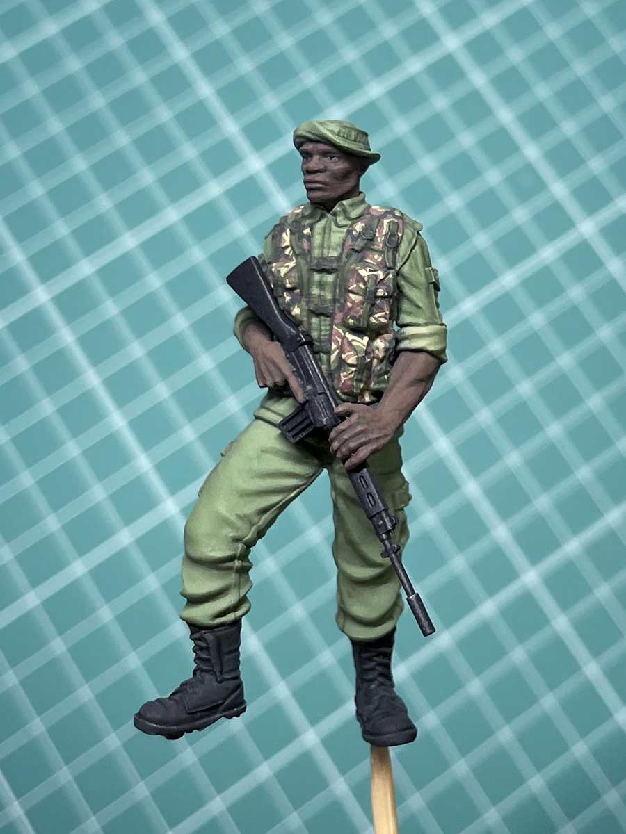 I got the vignette depicting the last white rhino from Scientific Models. It includes a 54mm scale figure of a Kenyan ranger as well as the rhino. Here’s the finished figure: