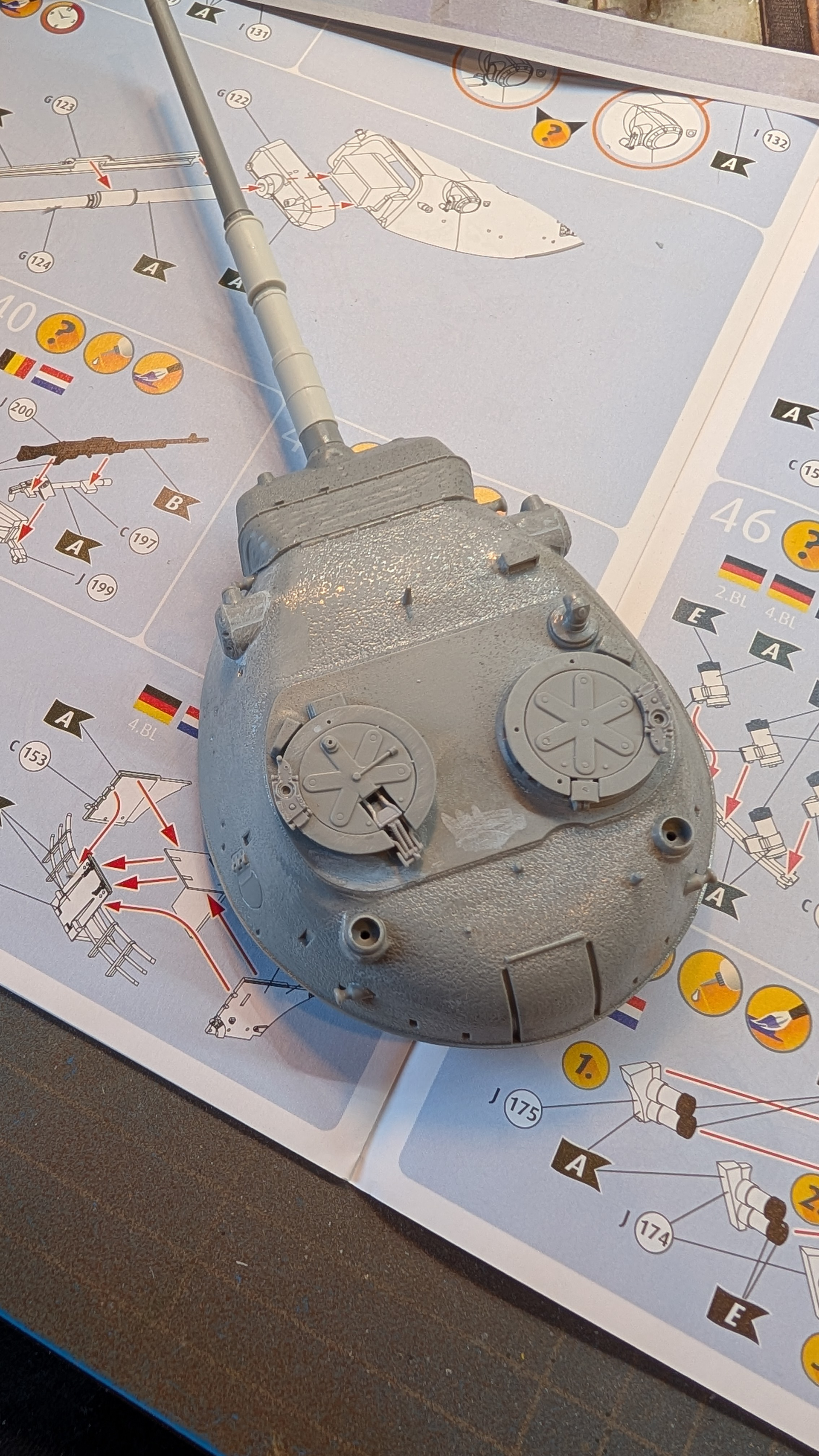 Construction on the turret is done. I used the light from a Meng kit that I had in the spares box, because the details were nicer than the Revell version.