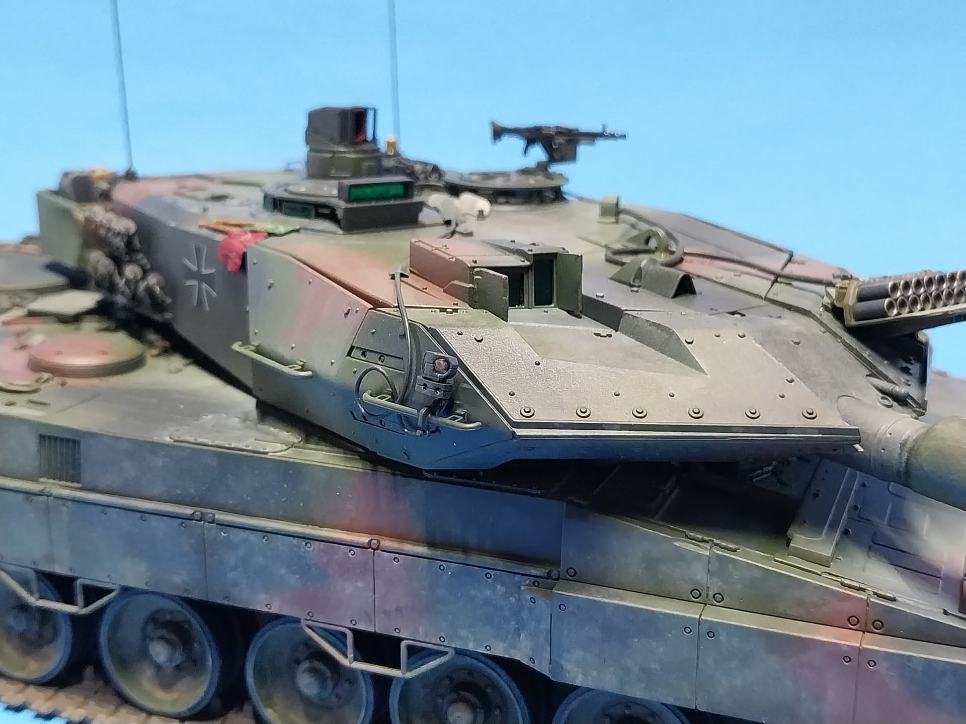 RE: TES sensors - The sensors on the turret corners, wiring and unit are all from the Meng ARGUS Training System kit… what a bear to build! No instructions, overly fragile parts and no painting guide. I used Google Search to do them justice. Wiring done with Tamiya Cabling and fine copper wire. Here are some more pics.. I didn’t want to hijack your post. I built the HB Leo kit (2a4) what a pain… the vision blocks were all malformed as you mentioned. Looks great so far - keep going - good Luck