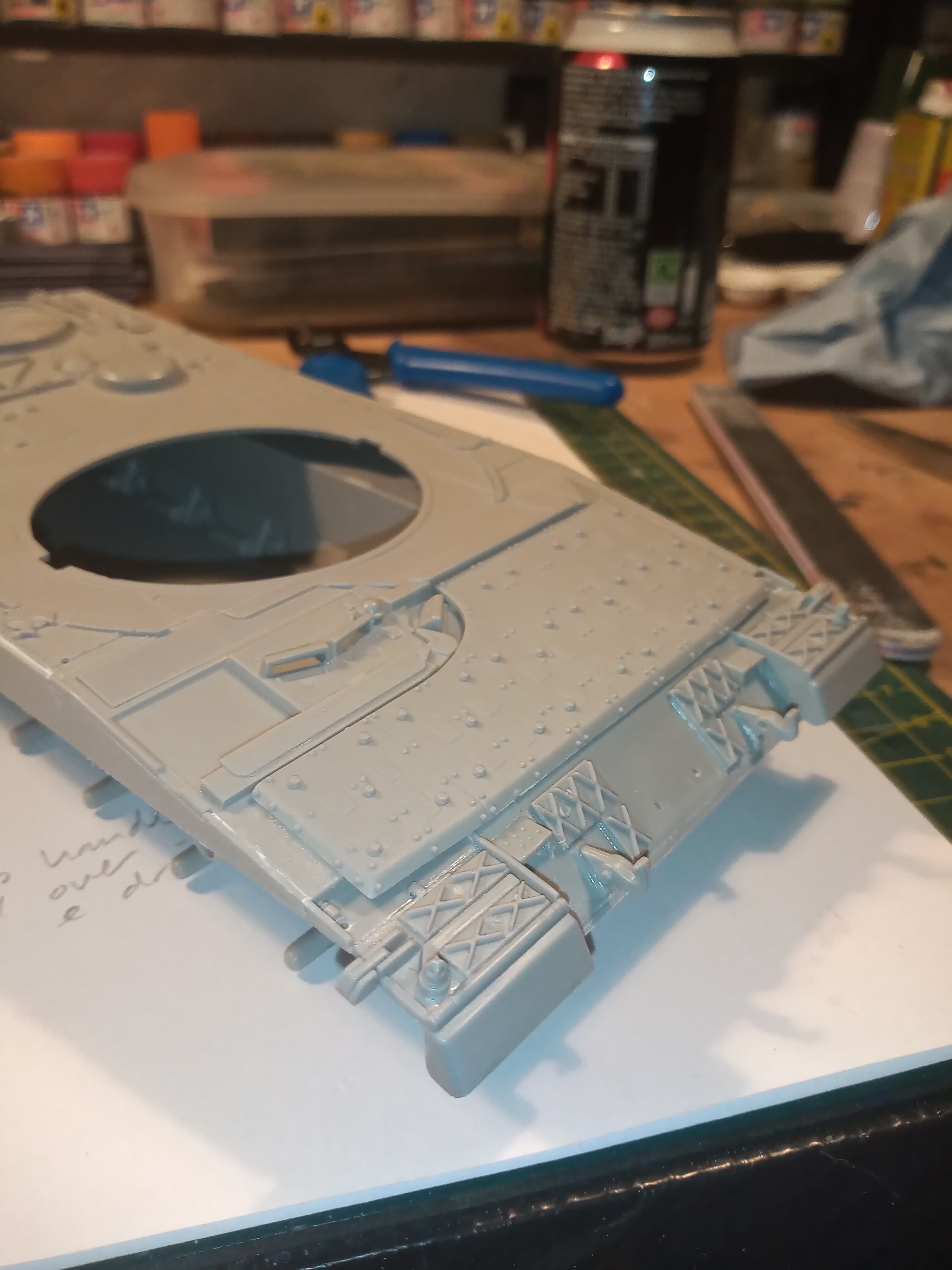 Got a bit further along on mine, all the hull is pretty much built up now, and have started on the turret.