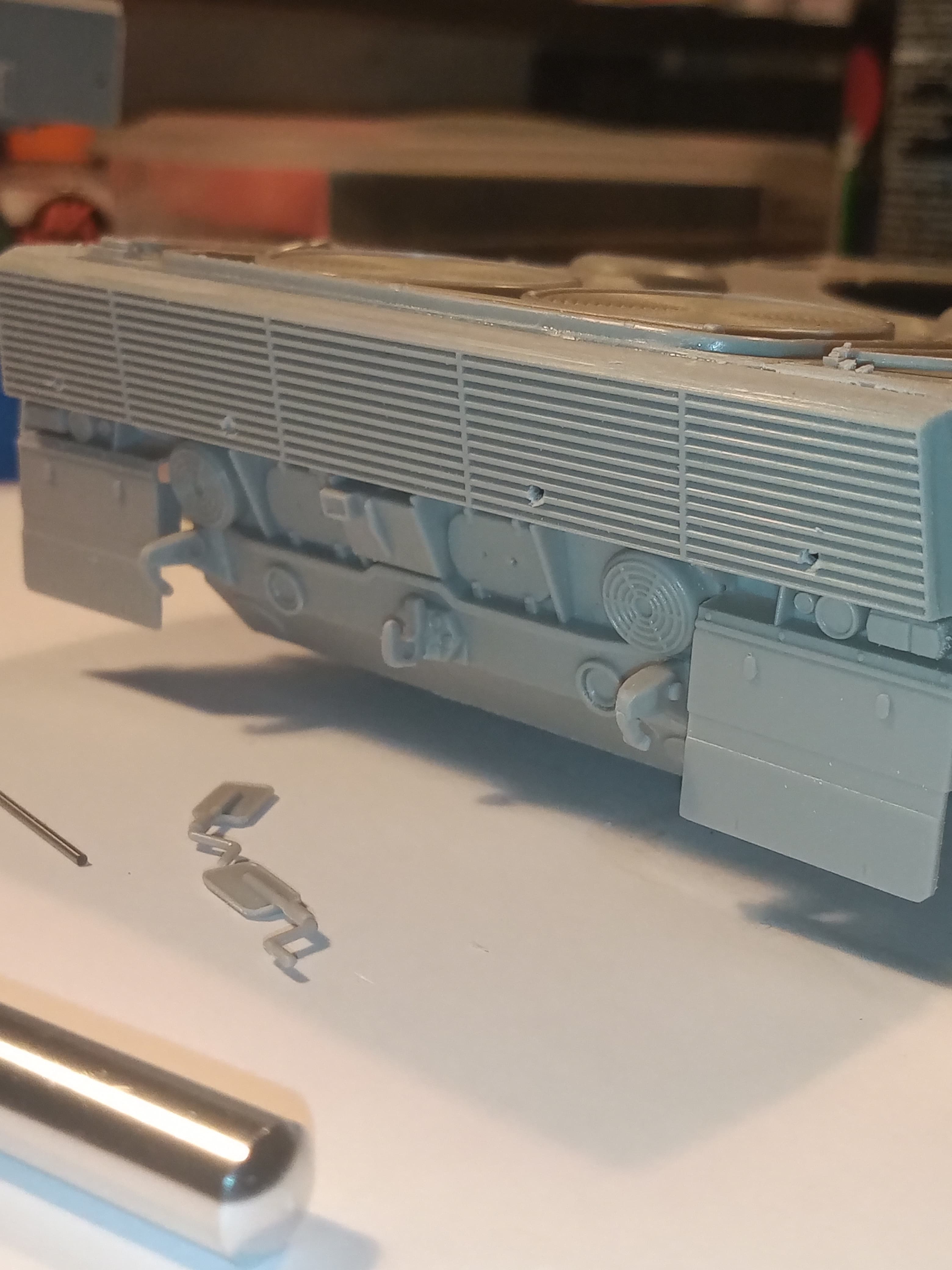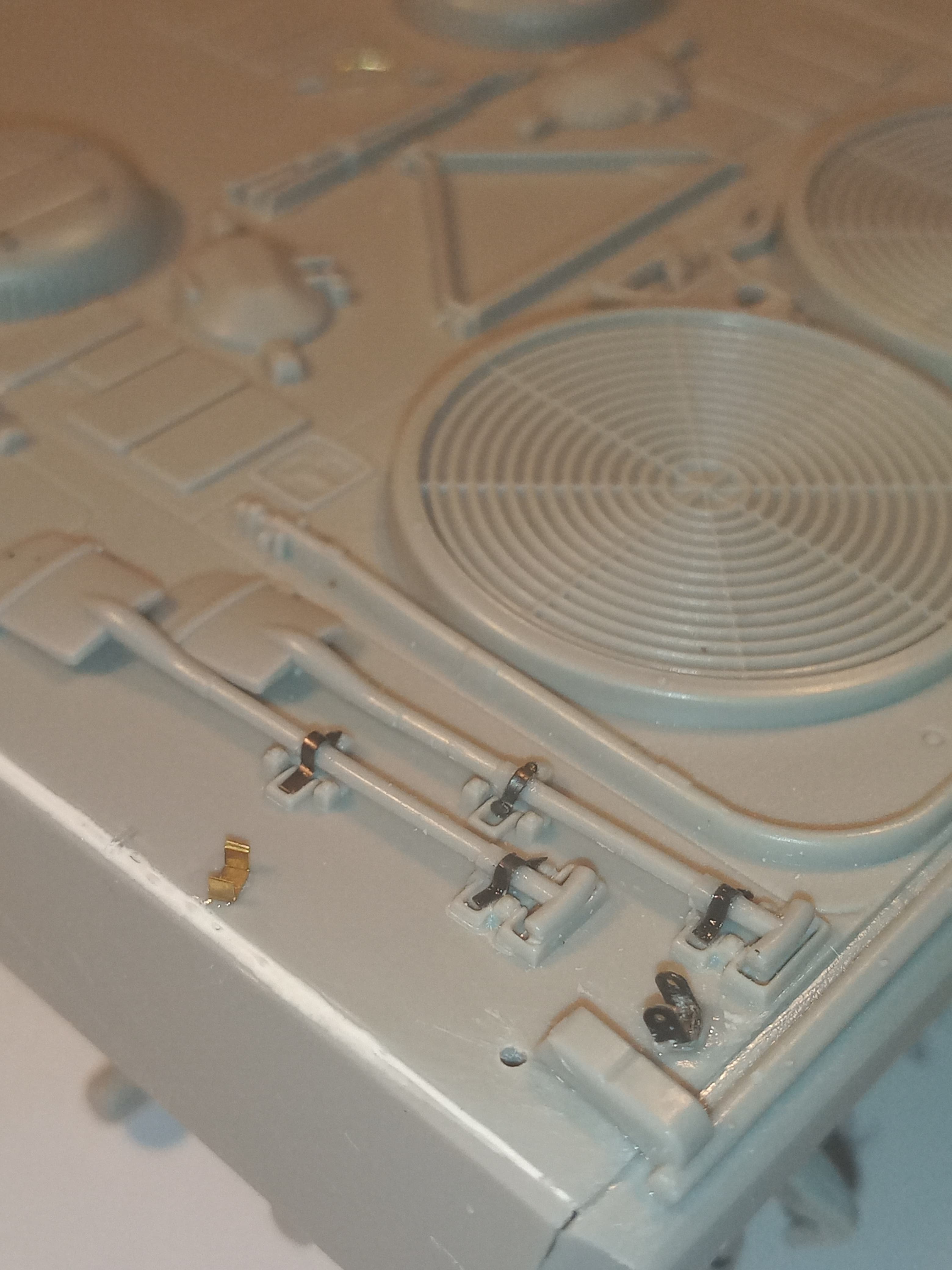 Was able to get some of the rear deck PE detailing done, plus the handles have all been swapped out for .4mm wire. PE was left overs from a Cr1 set, a King Tiger set and AS90.