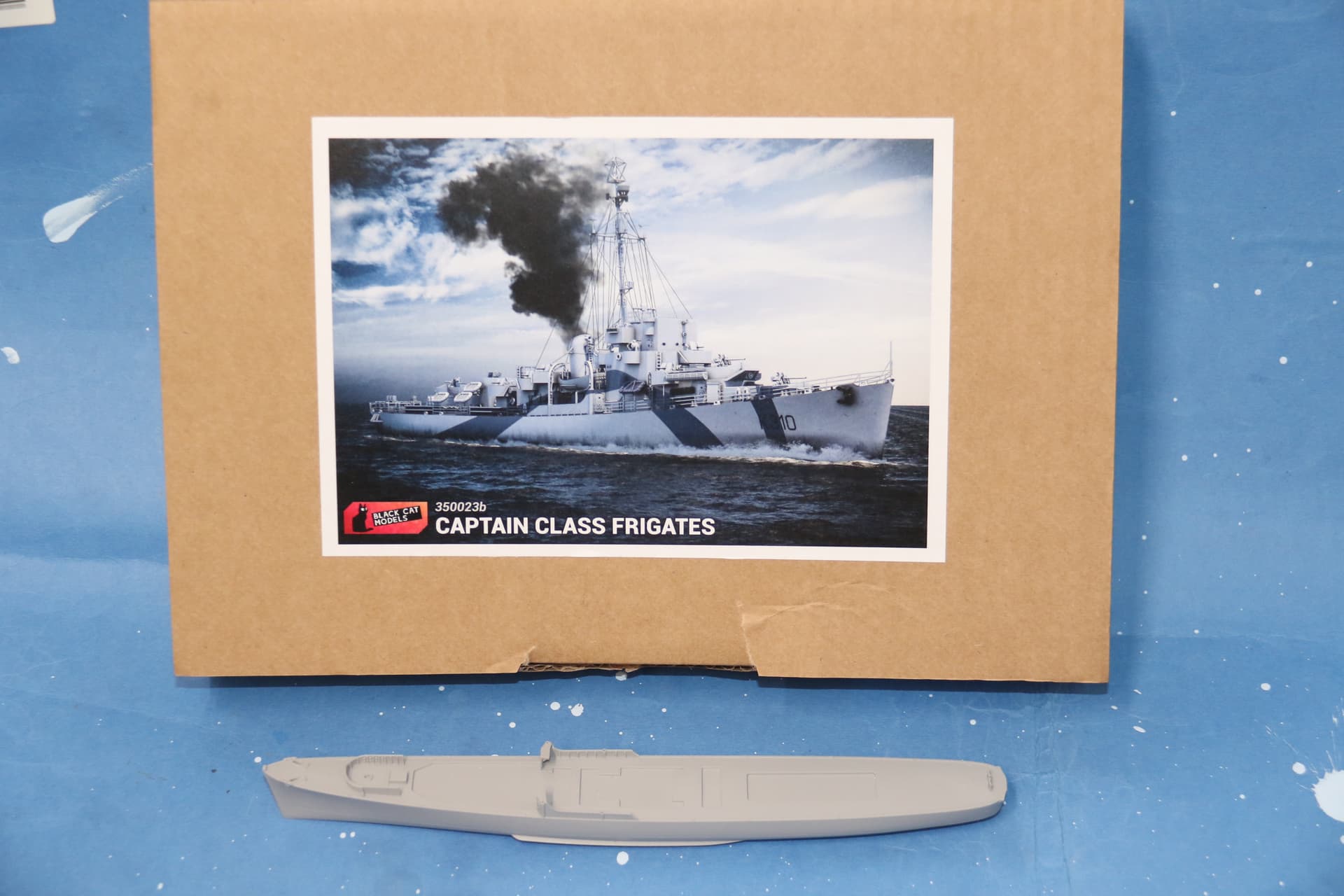 Latest release from Black Cat, Captain classed Frigate, the Evarts version, something I have hopped would come along. Mine arrived in the post today. Resin cast hull and major superstructure components, the bulk of the rest of the kit 3D printed, also included one large and one small etched fret and three turned brass parts for the mast. The kit and the hull and all the other resin castings are very clean and crisp.