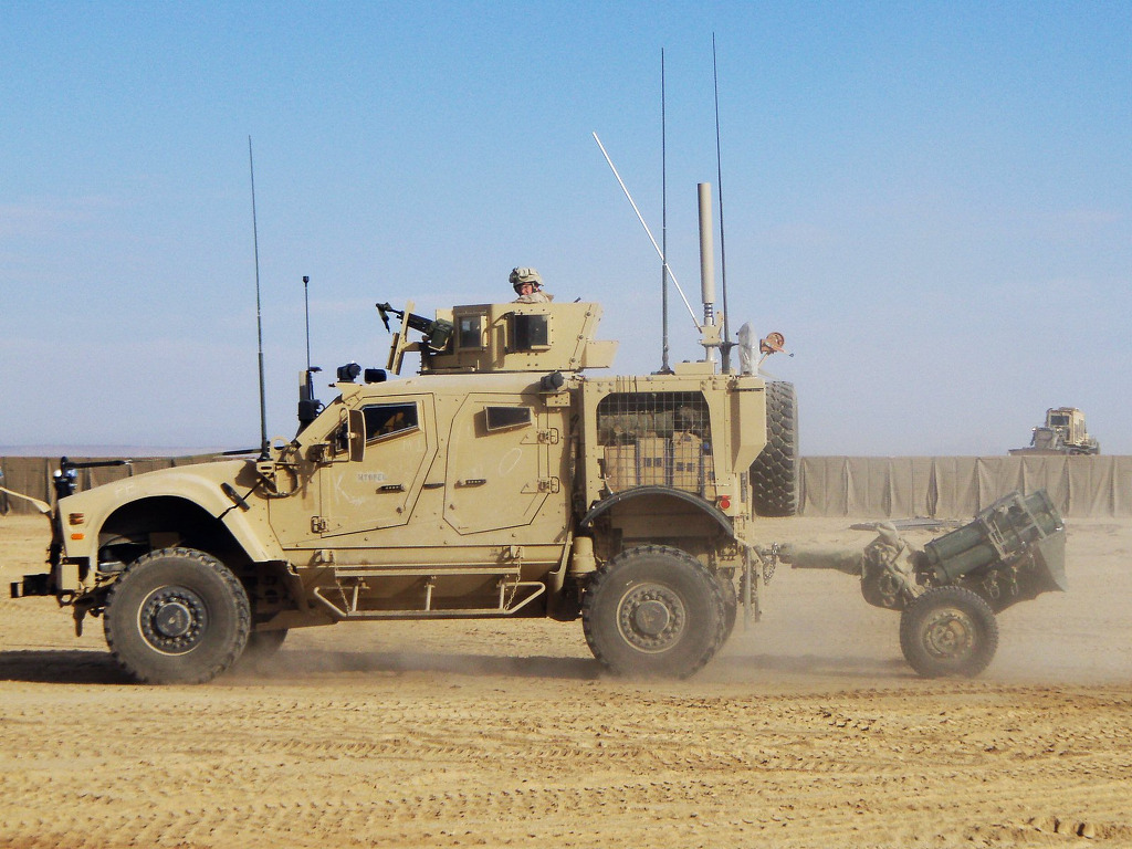 An Expeditionary Fire Support System (EFSS) belonging to F Battery 2/12, Battalion Landing Team 3/8, 26th marine Expeditionary Unit, Regimental Combat Team 2, is being towed by a Mine Resistant Armor Protected All-Terrain Vehicle aboard Combat Outpost Ouellette, Helmand province, Afghanistan, Jan. 29, 2011. This is the first time that EFSS has been employed in Afghanistan. Elements of 26th Marine Expeditionary Unit deployed to Afghanistan to provide regional security in Helmand Province in support of the International Security Assistance Force.