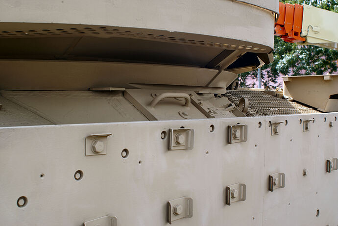 Someone on another site was asking about Bradley fuel cells. They were not modeled by Meng or any other company or AM outfit. There are two; one located behind the air cleaner on the right side sponson next to the turret, and one under the turret. They are connected by a tube at the left front of the upper one.