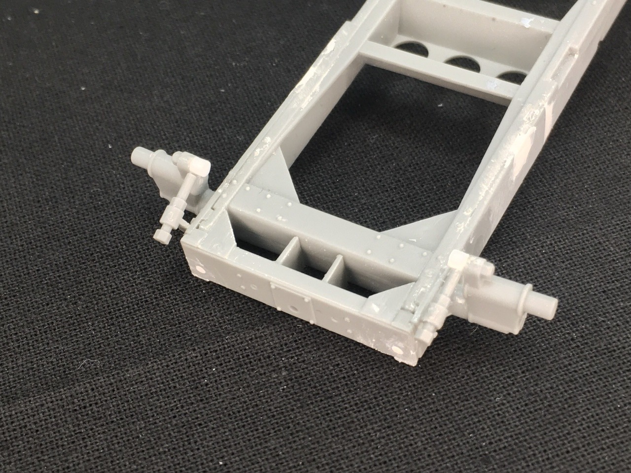 Converting a Dragon halftrack to have no spring (necessary for early vehicles) is simple enough: fill the holes for the spring mount on the sides of the chassis, add a little plastic rod to the idler mount for the tension adjuster to sit against and fill the holes at the corners on the rear of the chassis: