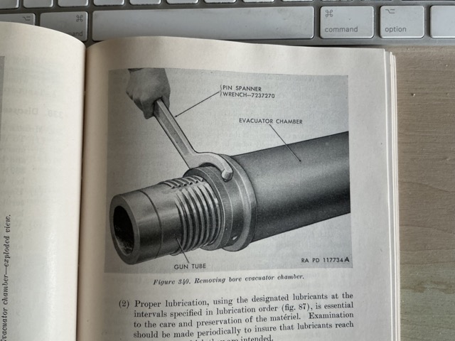 I don’t know about the M3A1 90 mm gun, but the T119E1 (M36) gun of the M47 had no attachment points for the evacuator as such, though it did have a groove around the barrel just behind the gas ports. The evacuator on that gun attached to the threads that the muzzle brake is also on.