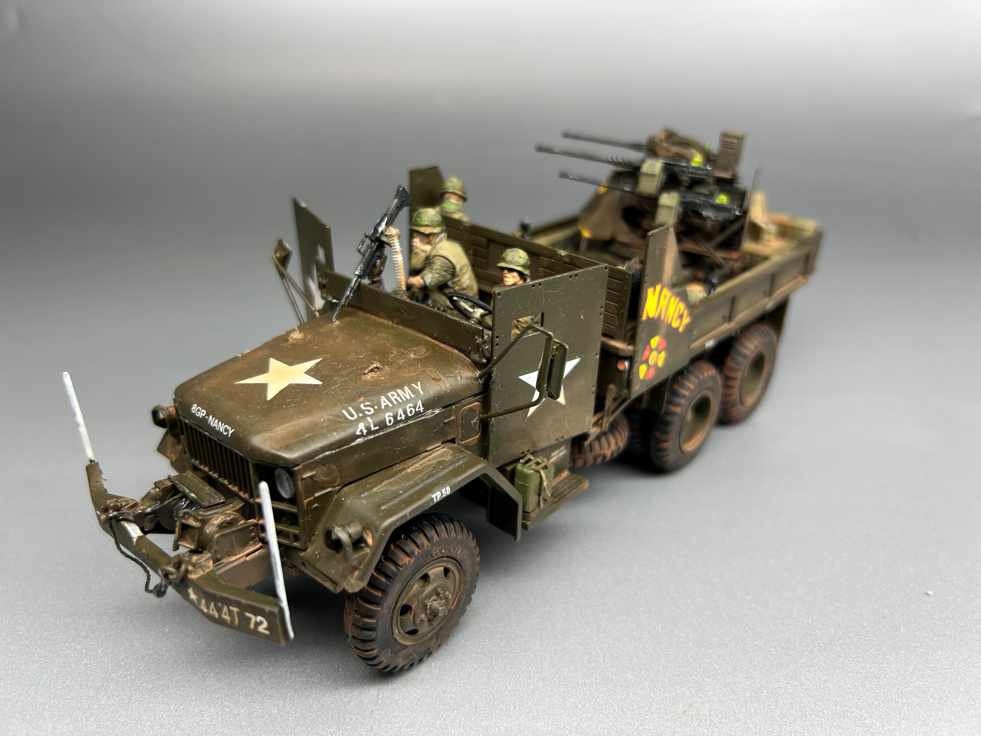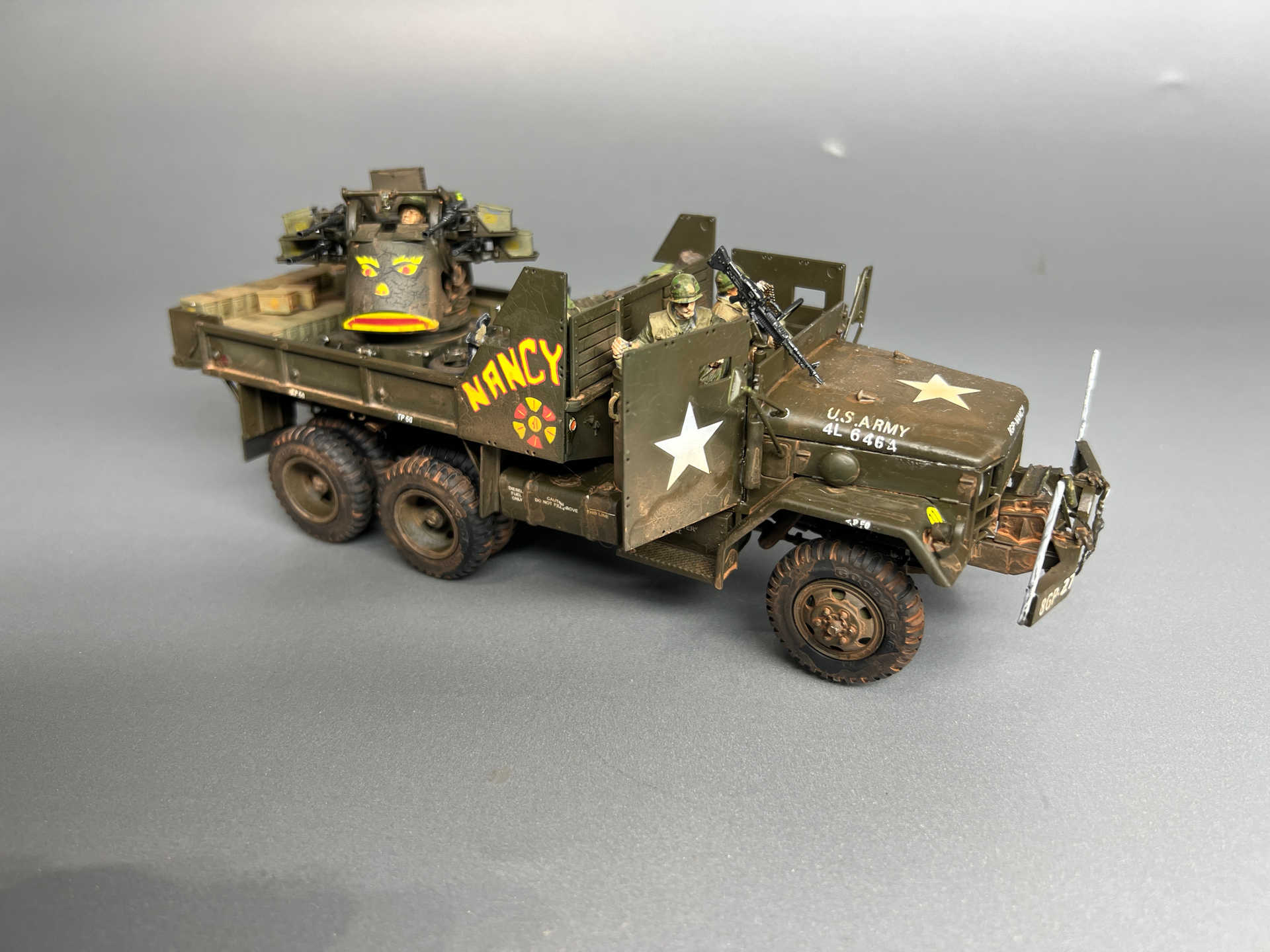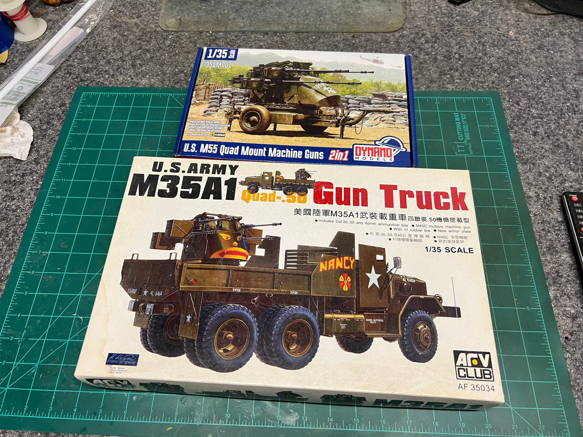 I started a build on the old AFV Club M35a1 Gun Truck Nancy recently. After going through some of the great older post here on it, I was able to use that information to build hopefully a fairly accurate model. This meant adding the Dynamo M55 kit for the trailer and 3d printed upgraded pieces for the Vietnam versions and the Eduard PE set along with scratch building several items like the rear box extension. Here are a few pictures