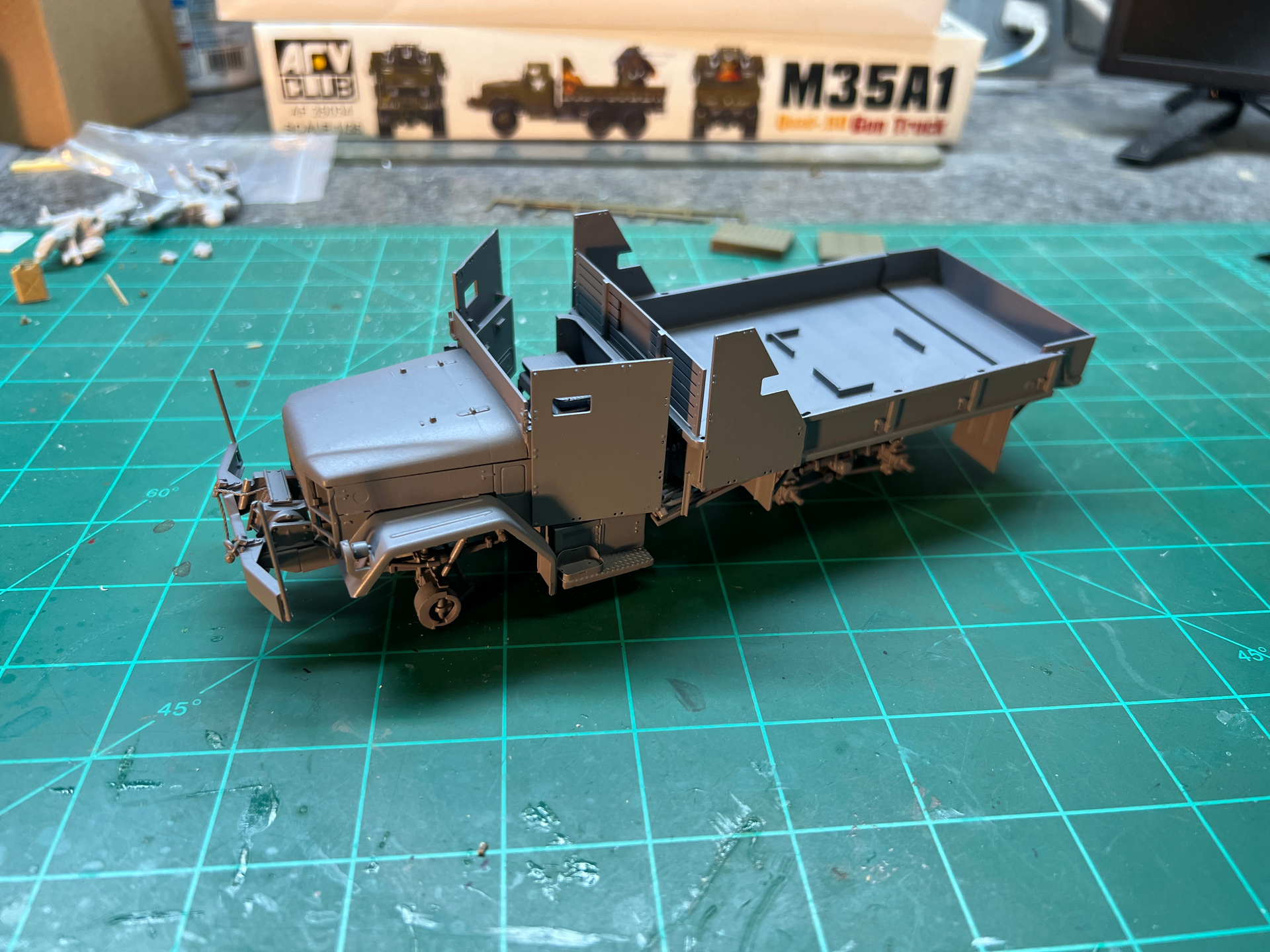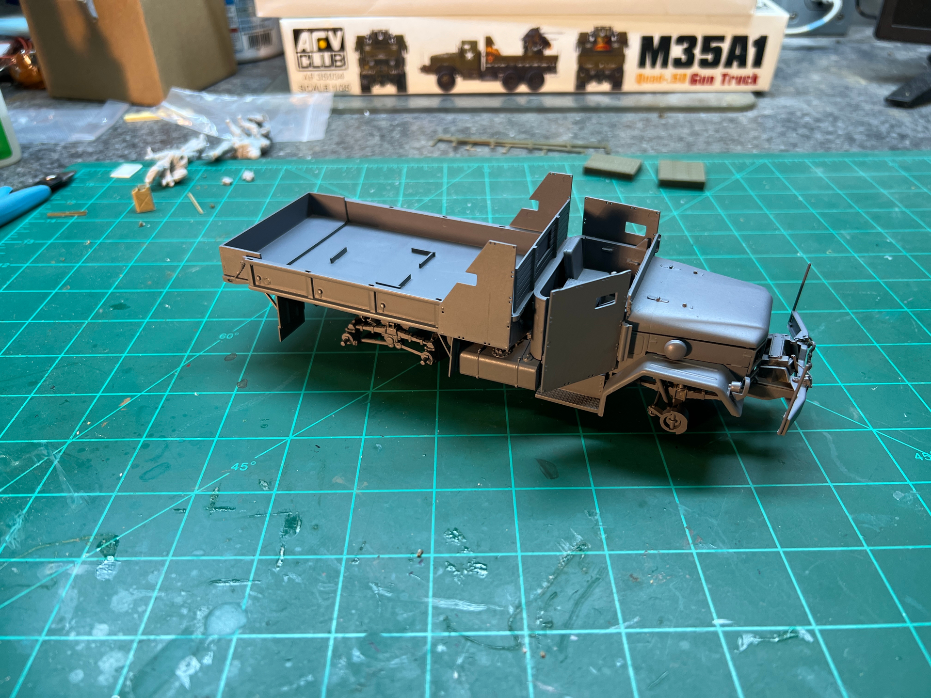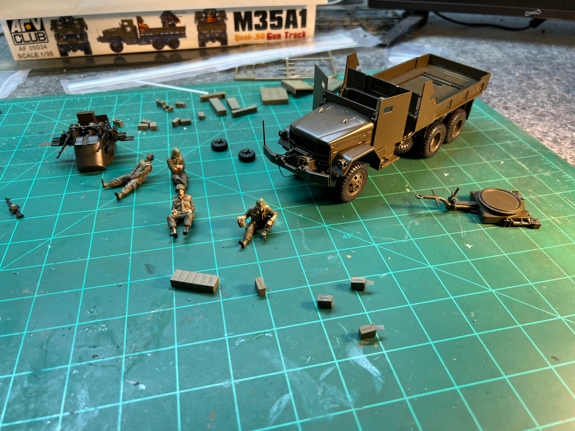 I started a build on the old AFV Club M35a1 Gun Truck Nancy recently. After going through some of the great older post here on it, I was able to use that information to build hopefully a fairly accurate model. This meant adding the Dynamo M55 kit for the trailer and 3d printed upgraded pieces for the Vietnam versions and the Eduard PE set along with scratch building several items like the rear box extension. Here are a few pictures