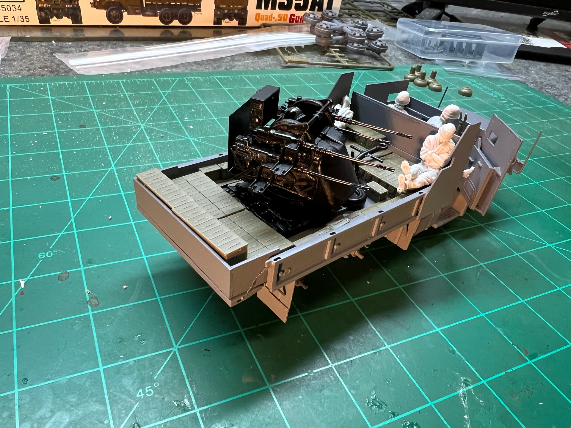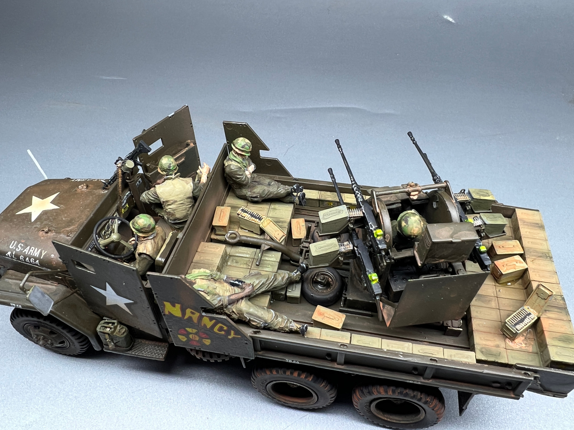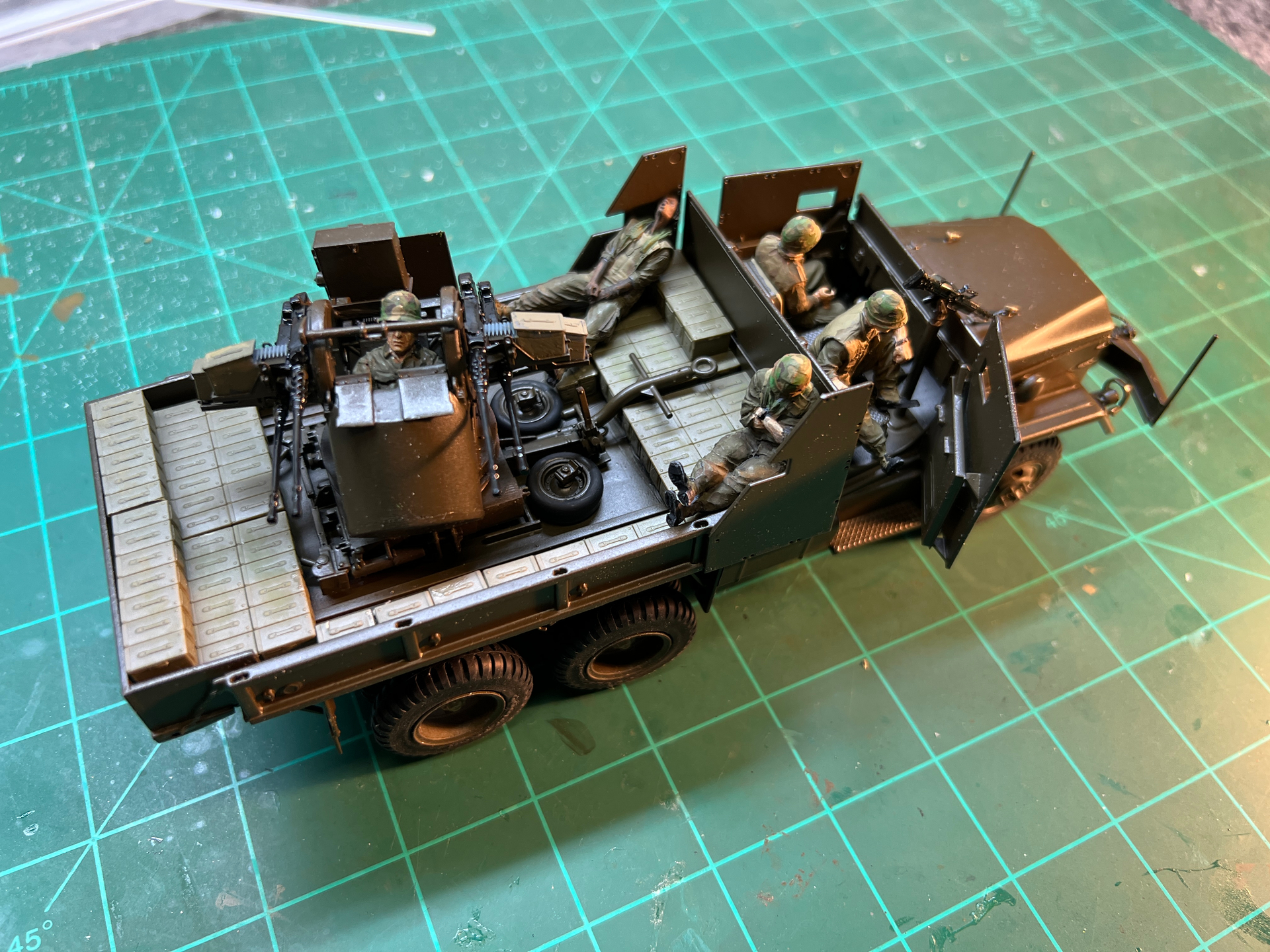 Thanks James, I used your advice from several of the older posts here to try and get the truck as correct as I could. Using several of the pictures you posted as reference material. I know you had talked about how Nancy had a wooden decking built around the trailer in the bed and that made me wonder if they had just repurposed the benches off the troop seats, so I used them from the kit, and they laid in almost perfectly alongside the trailer in the bed and look just like the picture you had posted of it.