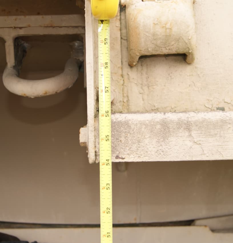 From concrete pad to top of fender at front of exhaust grate, 56-3/4 H