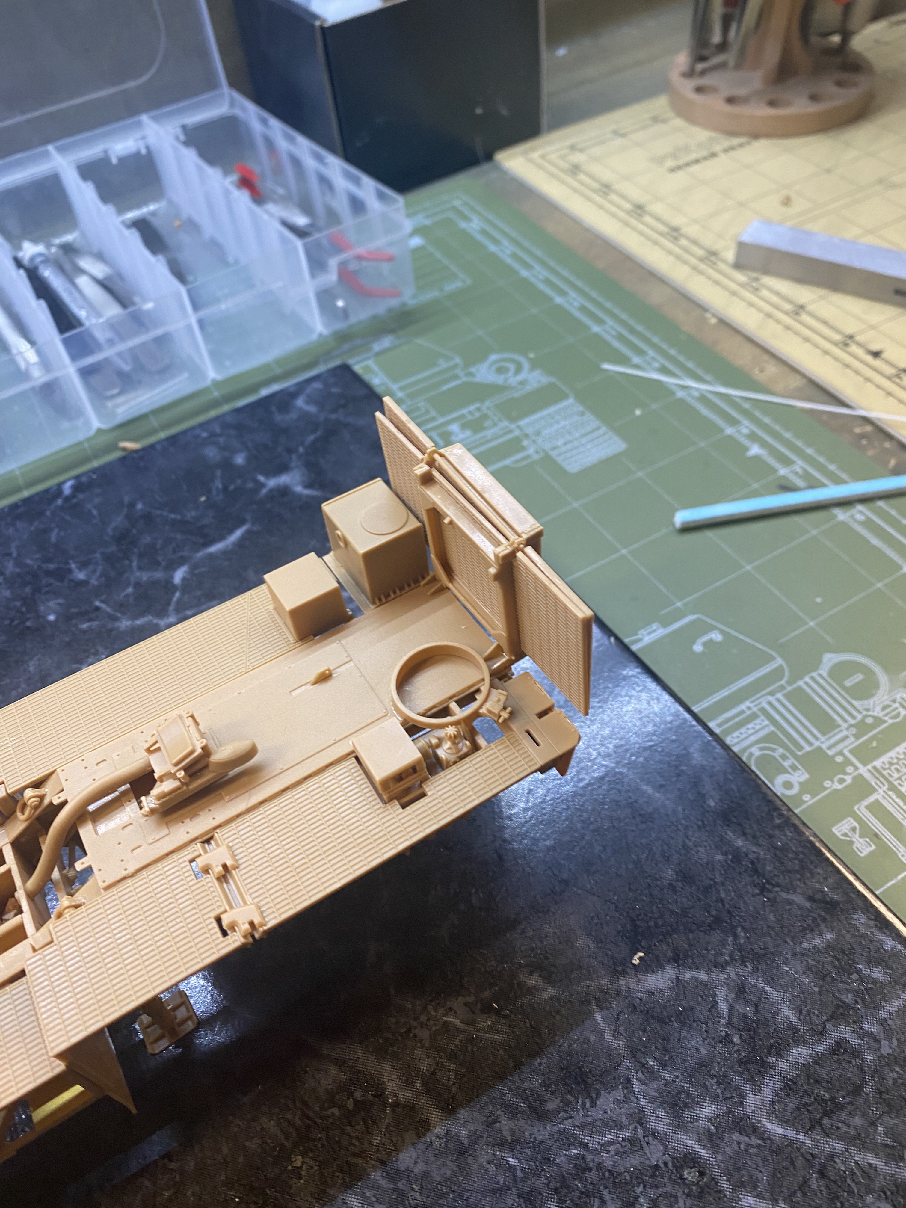 All this is only temporary at this point and probably won’t be attached until after paint. This is getting really unwieldy to handle and there’s still a bunch of small parts I’ve left off (handles etc) because I’m sure they wouldn’t survive the build.