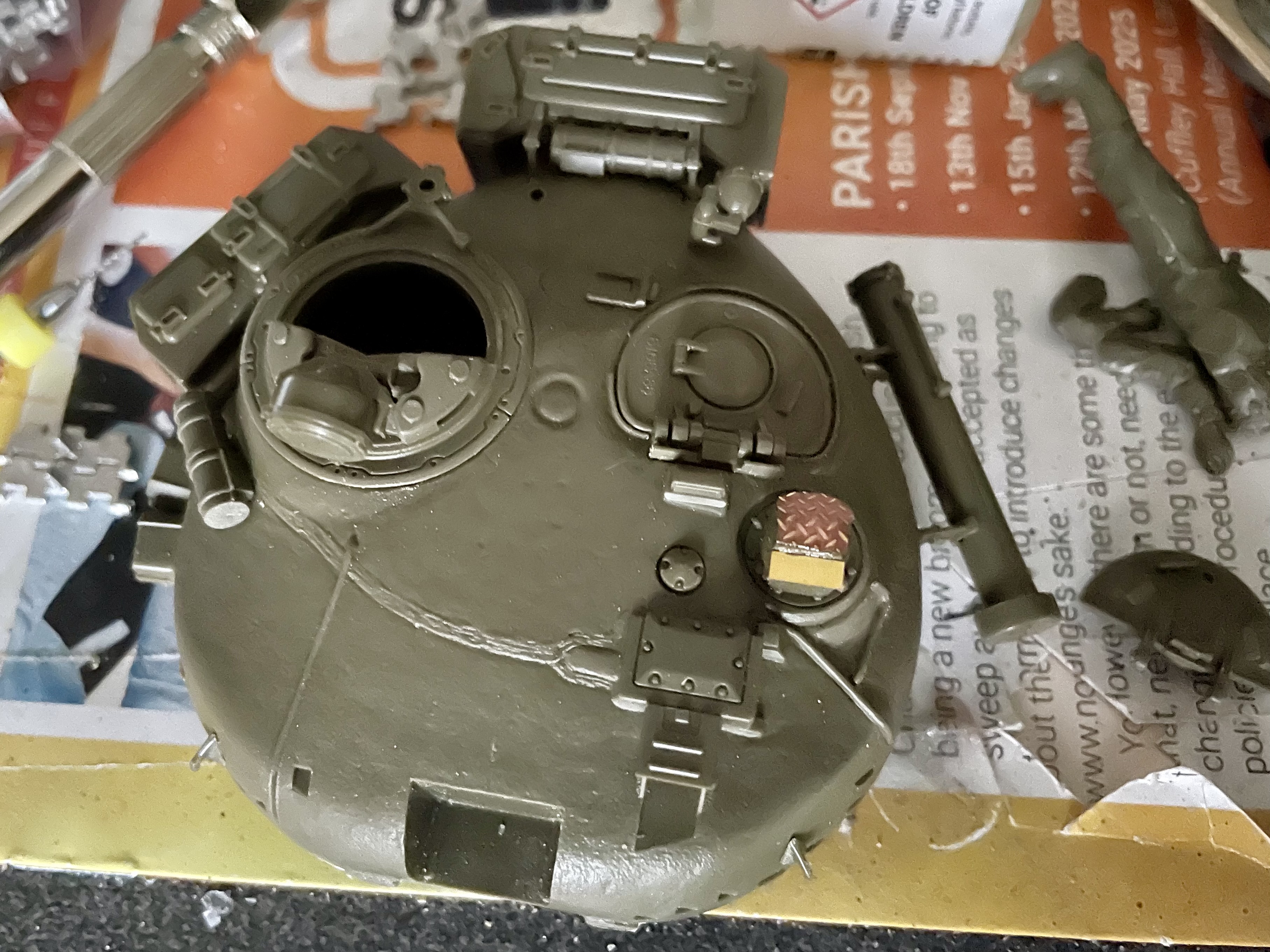Any way the Eduard PE arrived and the grills were fitted, main work has been around the turret. Looking at the commander figure that comes with the kit, would he be suitable for an East German tank commander?