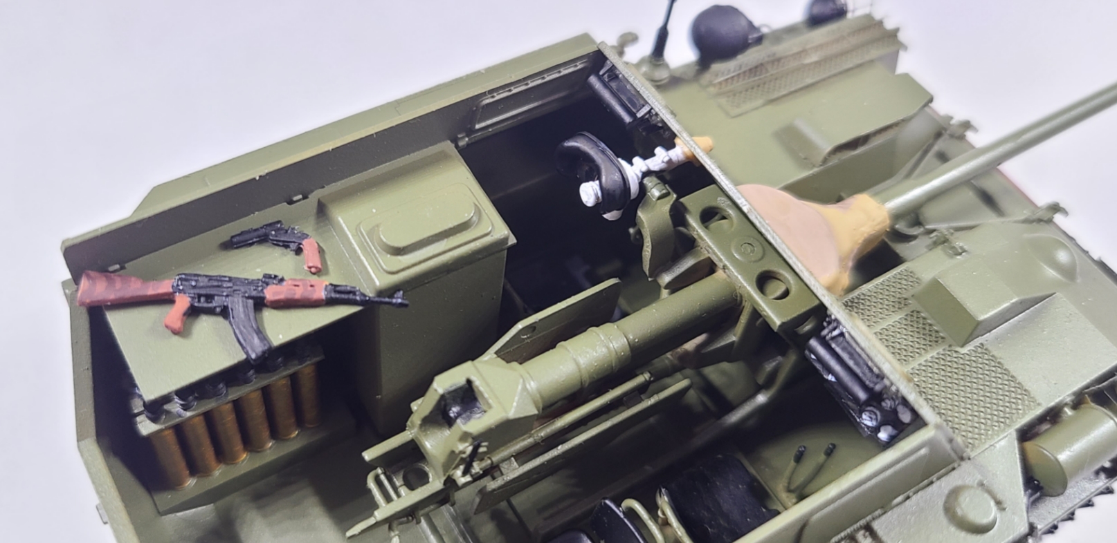 What a great little machine you have there- it may be small but you have put plenty of detail into it! I think it is a good choice to include the AK and to put a figure beside it so the viewer can appreciate the dimensions of it.