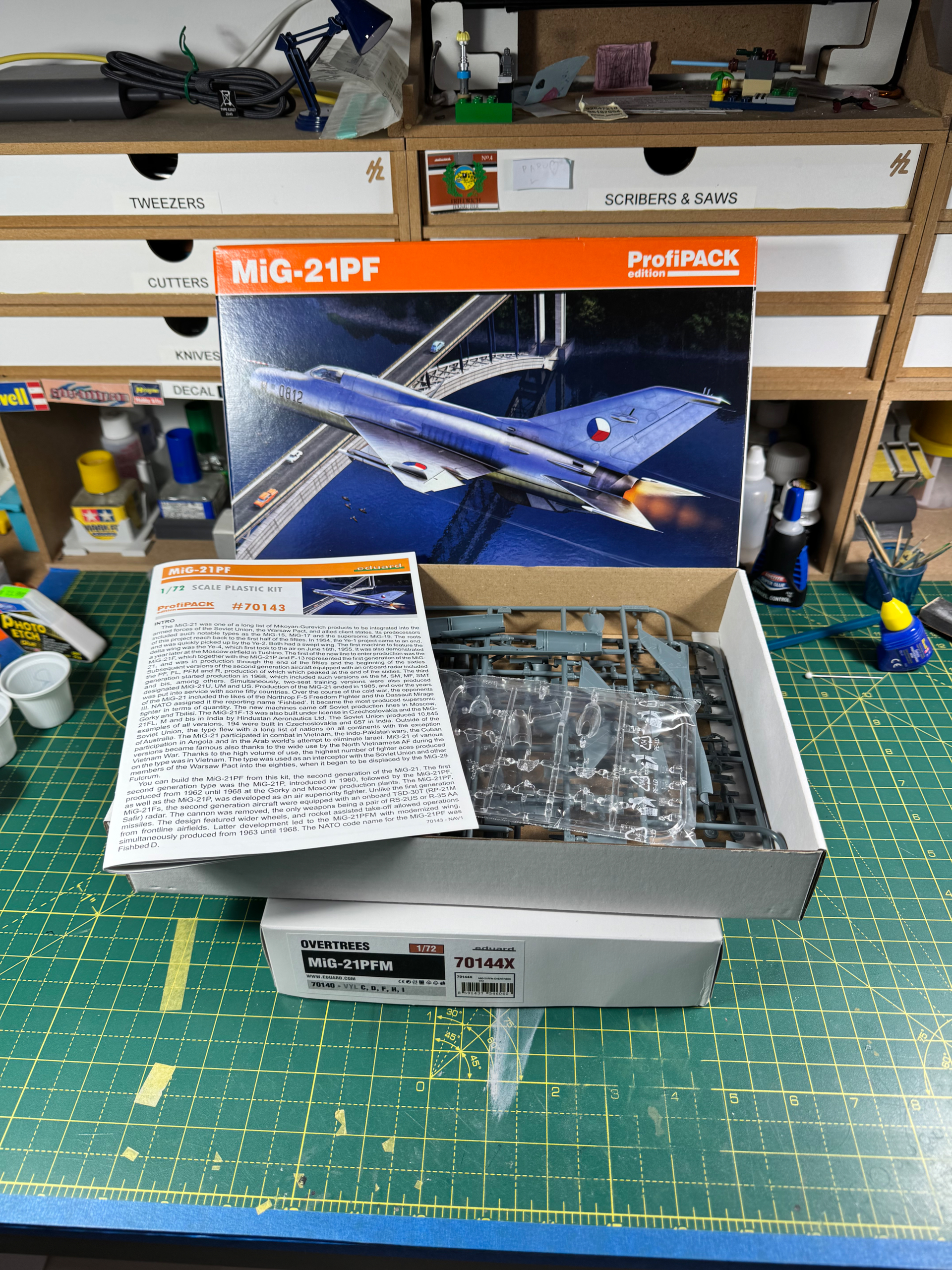 I’ll be making a MiG-21FL of the Indian Air Force. Since the FL was like an in between version of the PF & PFM, I’ll be needing bits of both the kits. It’s 85% a PF with the spine, vertical fin, exhaust cone and the ventral fin of the PFM. The donor PFM kit is a overtree set from Eduard.