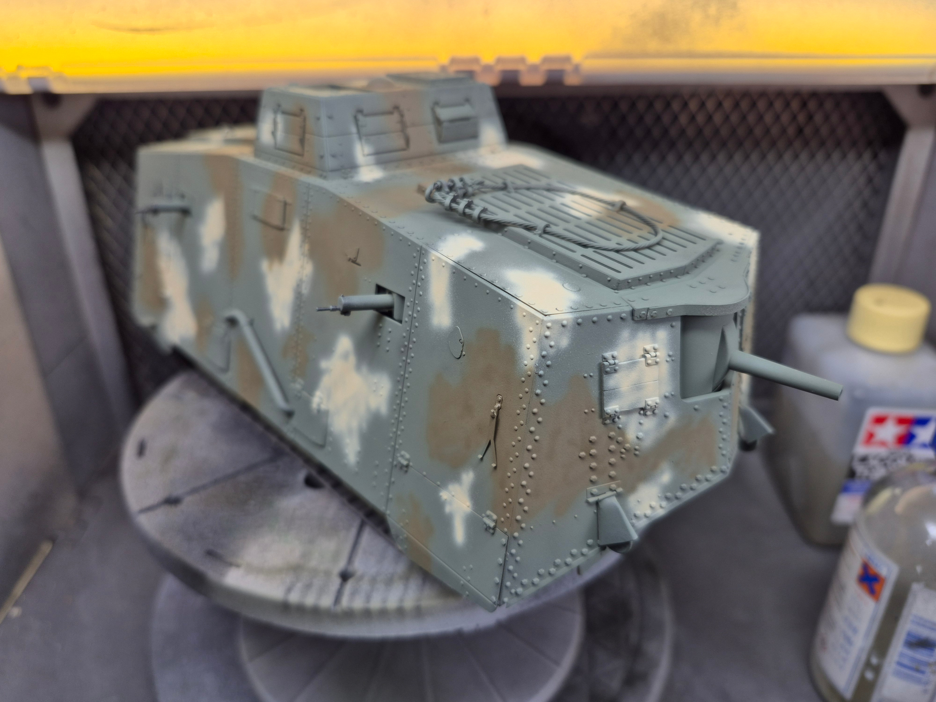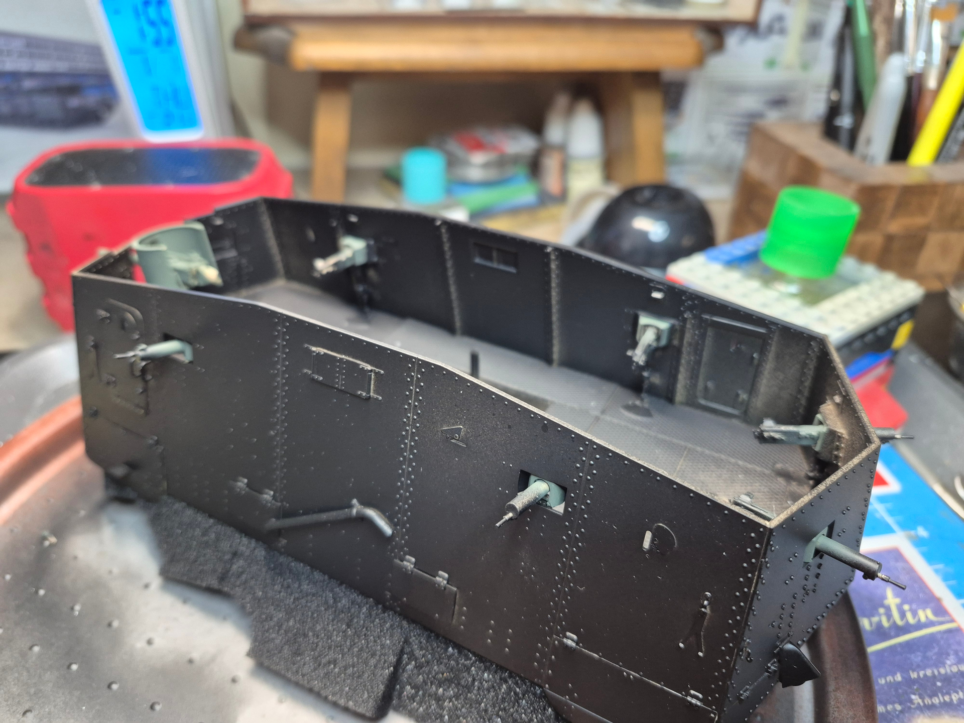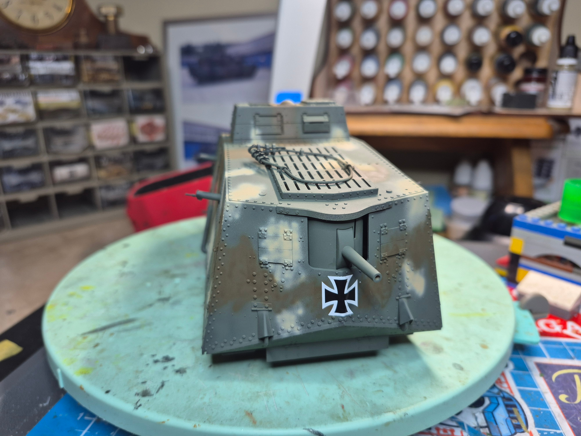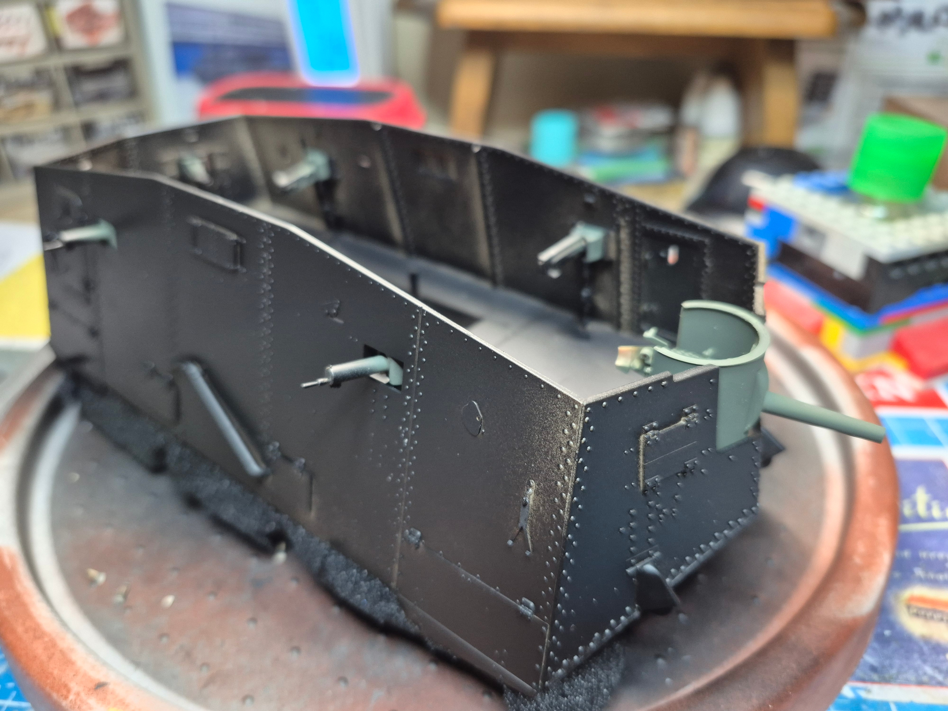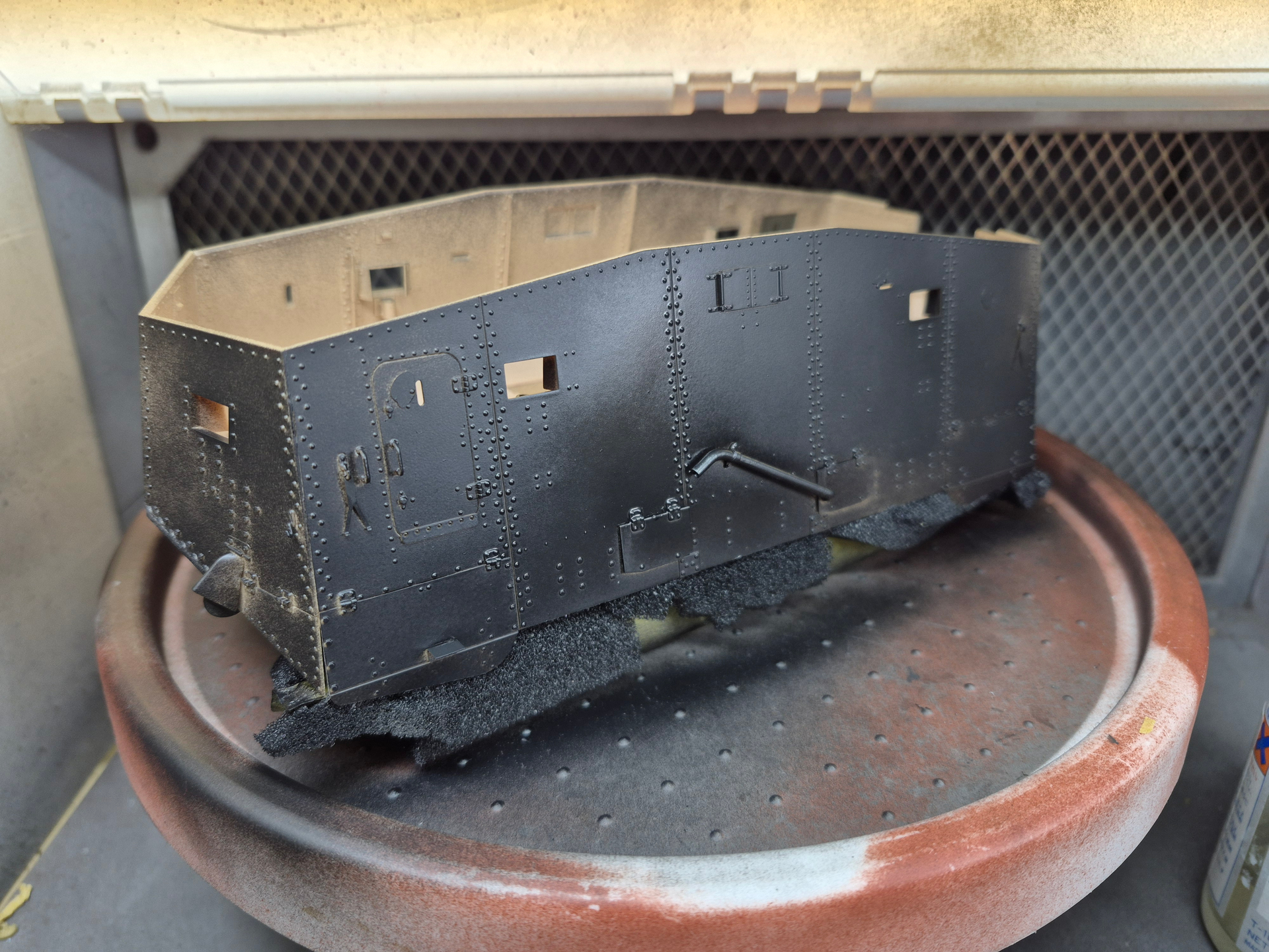 I’m now wondering which specific A7V this kit represents. It has riveted sides, so clearly a Krupp one, meaning 503, 504, 541, 542 or 543. All the other details I can see in the photos of the model so far appear to apply to all five, though.