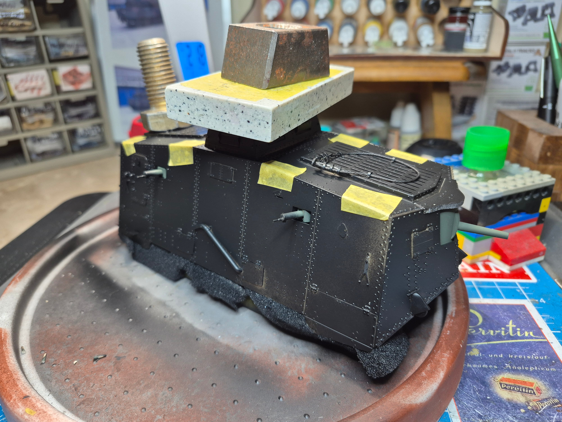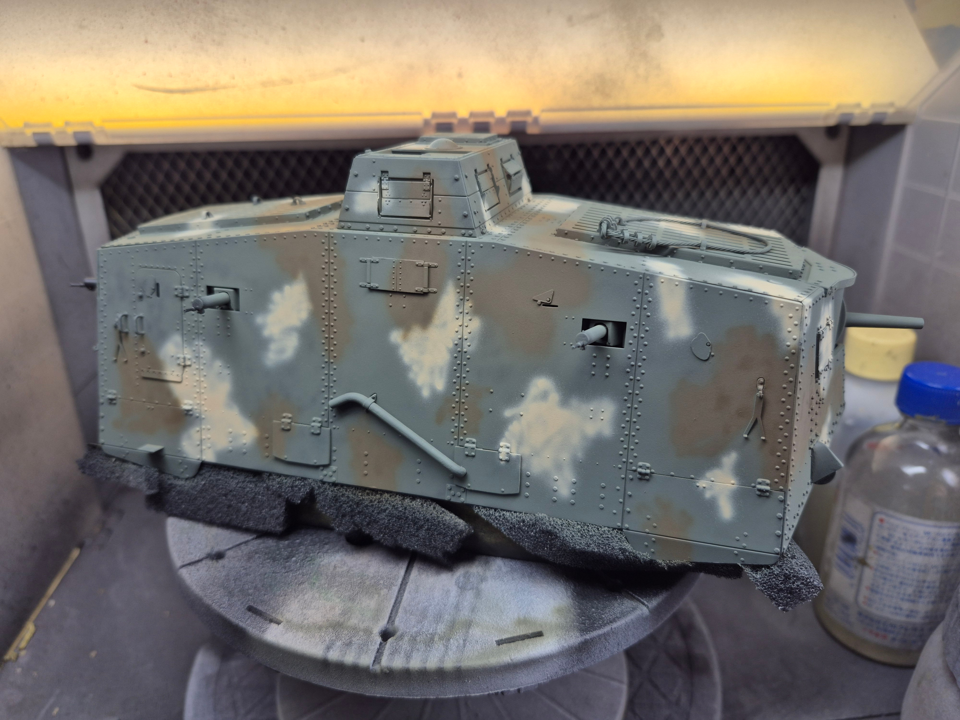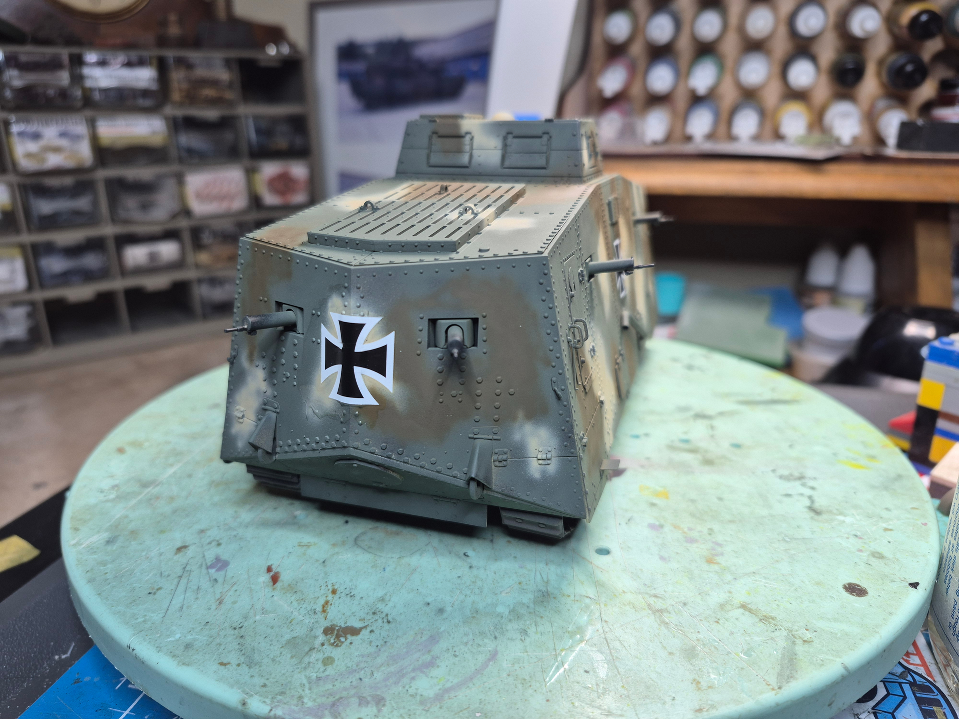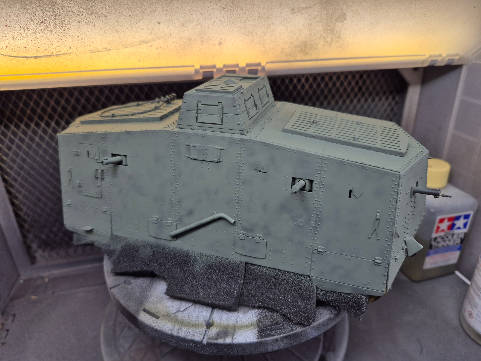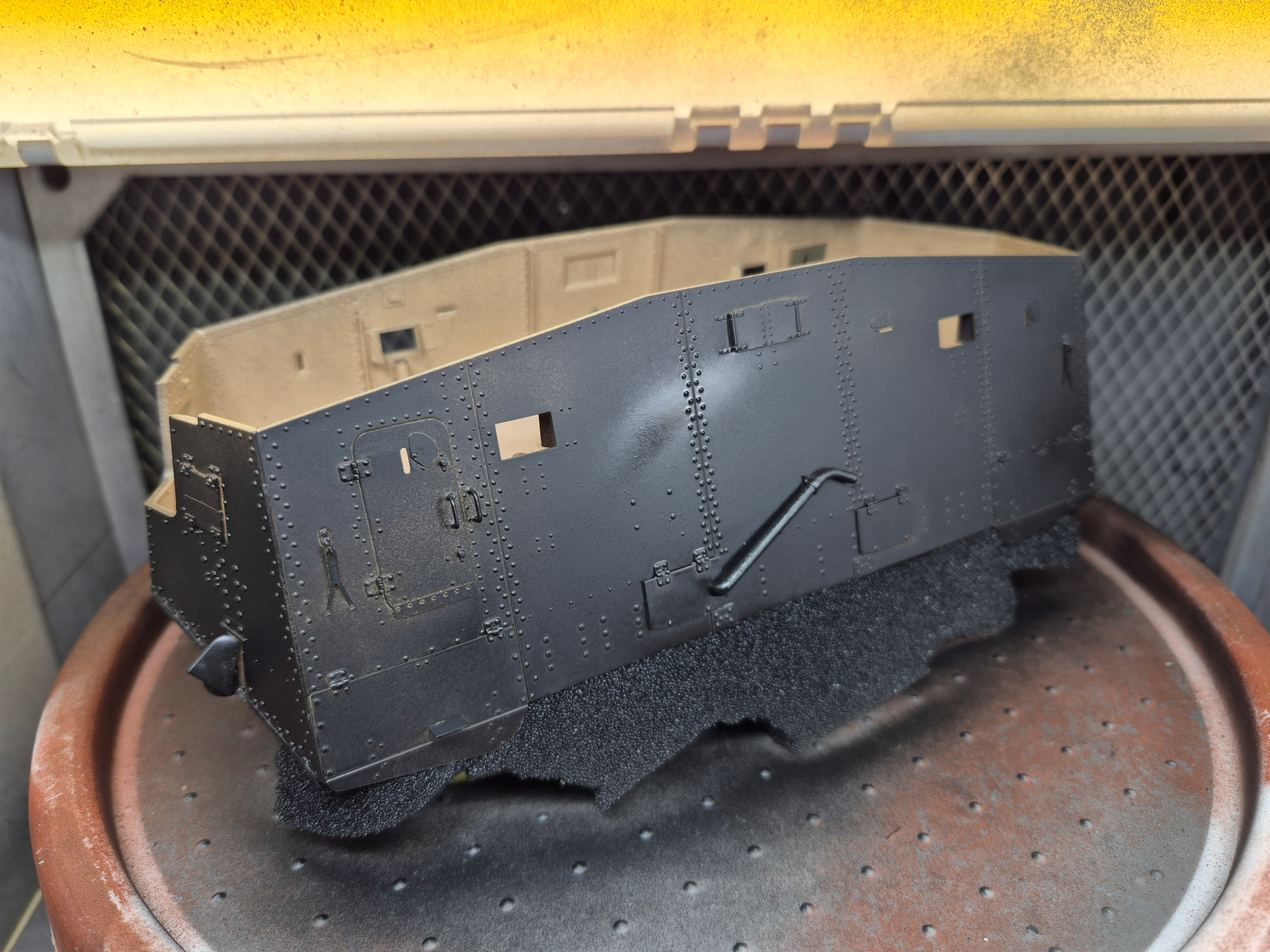 I’m now wondering which specific A7V this kit represents. It has riveted sides, so clearly a Krupp one, meaning 503, 504, 541, 542 or 543. All the other details I can see in the photos of the model so far appear to apply to all five, though.